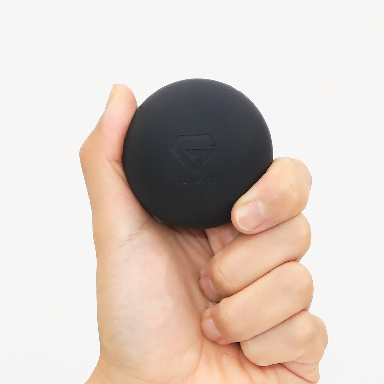 本商品は硬度80の硬さです。マッサージボールは柔らかすぎると刺激が足りず、硬すぎると痛みが出て筋肉がほぐれません。さまざまな硬さのサンプル品を体格や運動歴の異なる男女社員でテストし、全参加者に好評だった硬さで製品化しました。