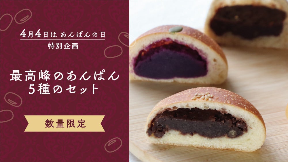 4月4日の【あんぱんの日】にちなんだ、素材にこだわり抜いた5種類の「あんぱん」とおすすめのパンのセットを限定で販売します。