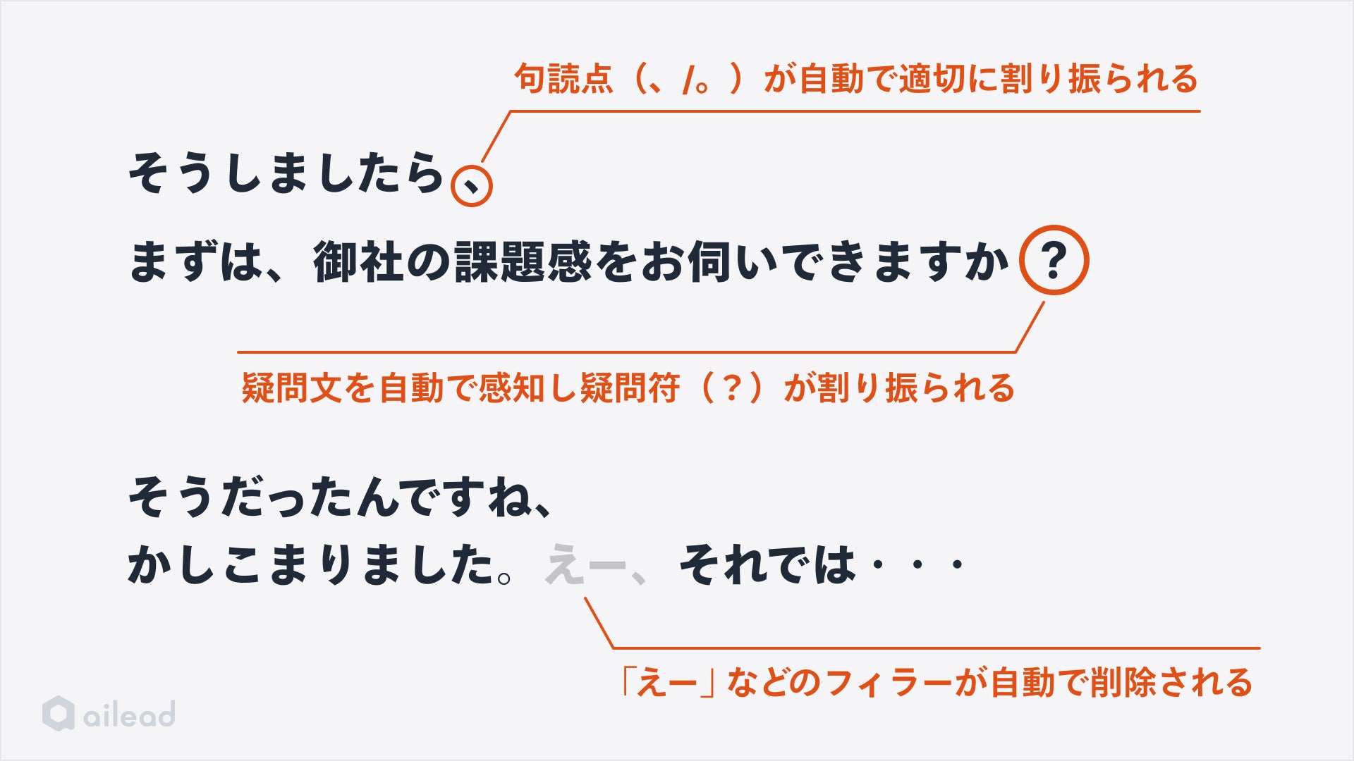 ailead はこれまで、AIによる商談データの収集・解析・可視化を通じて、営業組織の業務効率化及び「売れる」営業人材の育成による営業生産性の最大化をサポートしてまいりました。主要な機能の1つである商談録画の「自動文字起こし」機能は、議事録やトークスクリプトの作成補助としてご好評いただいており、精度向上について多くのお客様よりご期待いただいていました。