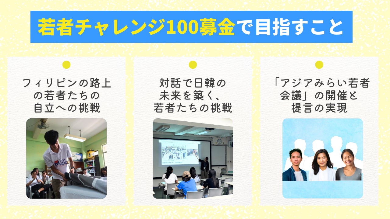 名称:ACC21「若者チャレンジ100募金 for 2026:あなたの応援でアジアの若者の挑戦が加速する」