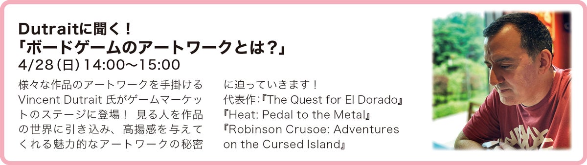 他にも、約5年ぶりの復活となる『フードコーナー』や、会場がバトルフィールドとなるスタンディングカードゲーム『DUEL BOY Pocket』、海外の人気定番ゲームが試遊できる『本当に面白いユーロゲームの世界』、ゲームマーケット恒例の会場周遊型イベント『ドラマチック謎解きゲーム』など、内容盛りだくさん!
