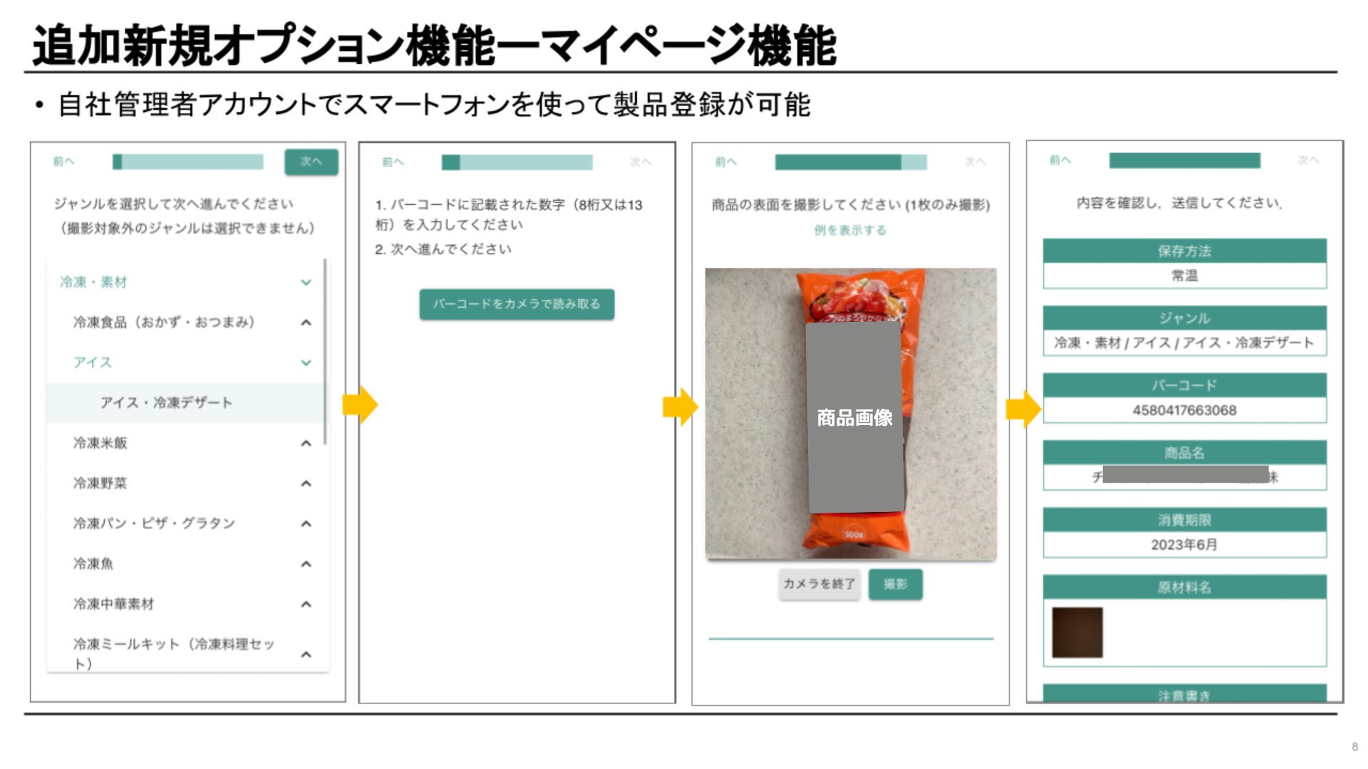 自社のマイページ機能が追加され、過去の自社製品や参考品などをアップロードし、管理・検索できます。