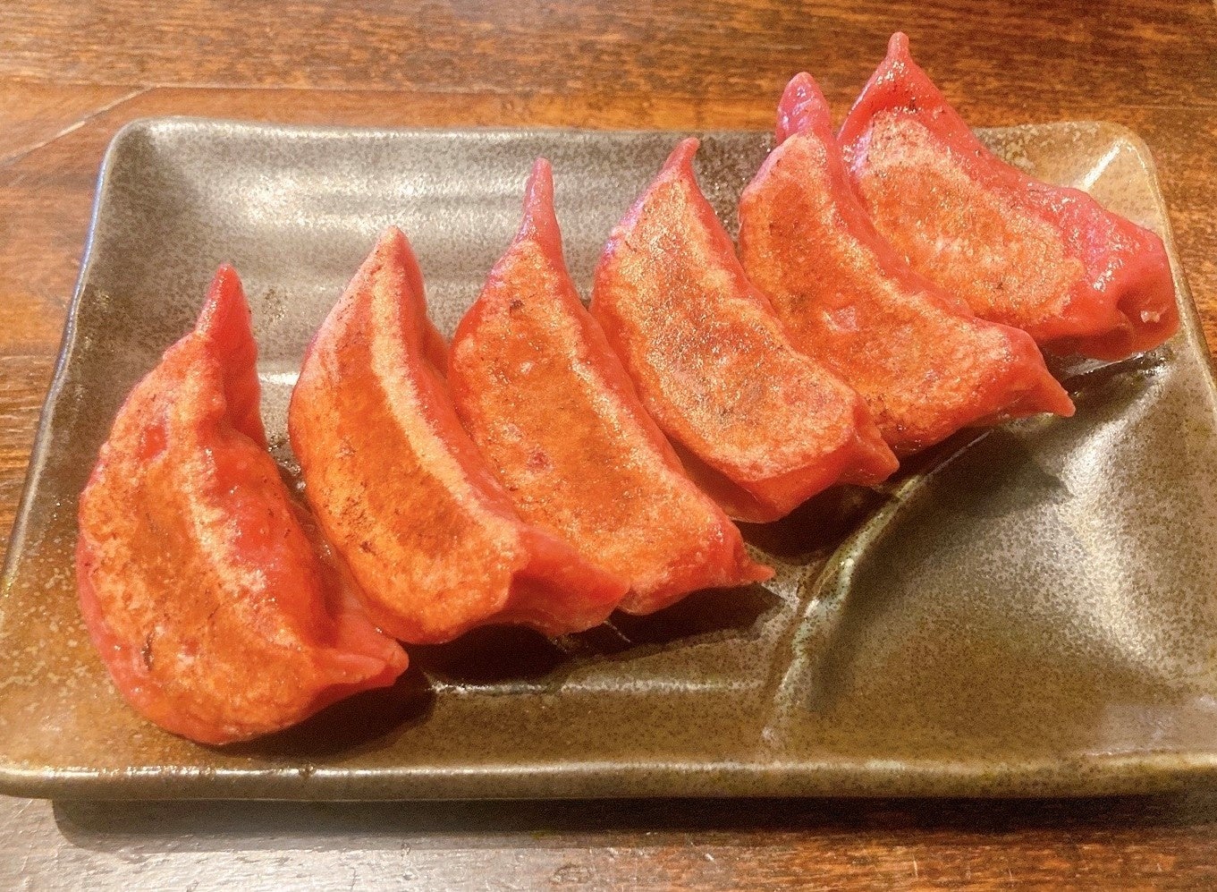 まず、見た目が特徴的な紅色の餃子の皮を使用し、視覚から楽しめます。辛さの秘訣は、国産のからい唐辛子や豆板醬、ラー油を使用し、香りも辛さが際立ちます。こだわりは、イタリアから取り寄せたモッツァレラチーズを使用。チーズの食感と一口食べた時の伸びた感じが食欲を刺激します。ご飯のおかずにもお酒のおつまみにも合うように開発されたカラチー焼餃子に、ビールやハイボールを合わせてお召し上がりください。