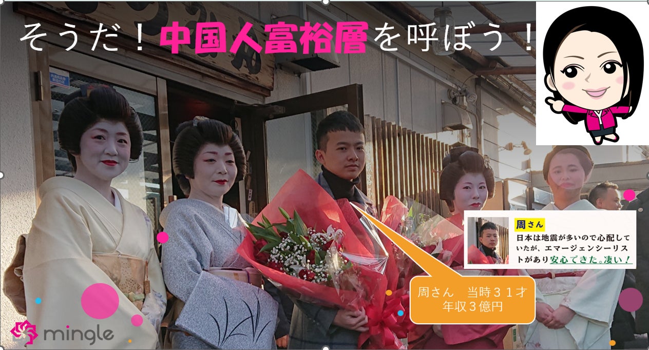 日中ビジネスのmingle株式会社(本社 富山県 代表取締役 百塚万里子)は現在、中国人富裕層向けにインバウンドツアーを賛同者の方々と共に日本全国で30本超作っていますが、より良いツアーを作り上げるために中国人富裕層の誘客をお考えの方を全国で募集します!