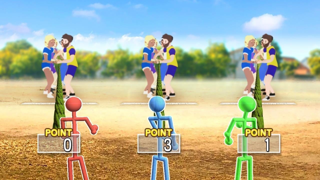 対戦で使いたい任意の3コンテンツを選び、同時にプレイすると最後に得点が表示されます。