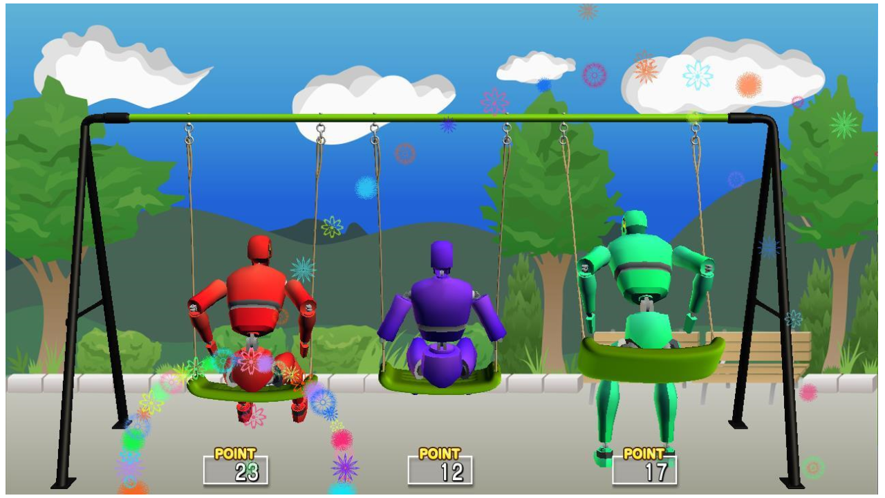 膝の位置が高いほど左右のゲージが上がり、高ポイントとなります。
