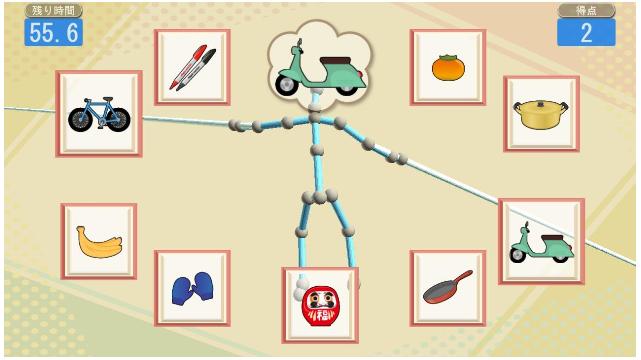 お題と同じ絵を棒でタッチしてみよう。