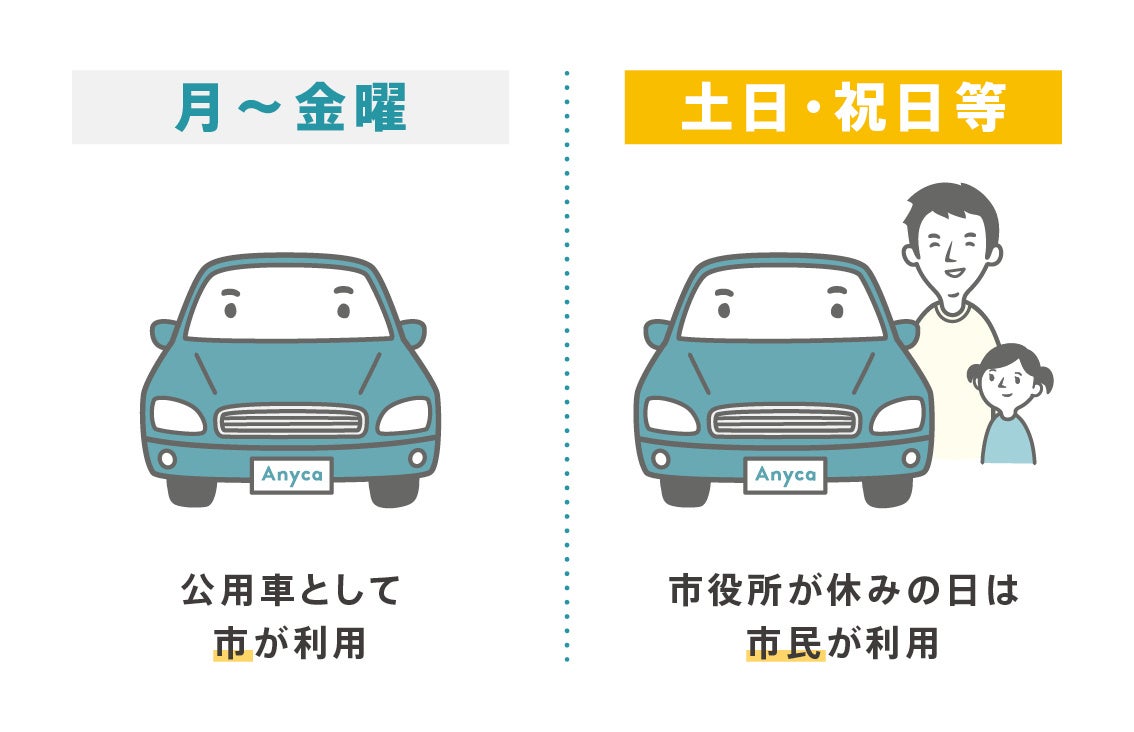 ・利用方法:カーシェアアプリ「Anyca」に無料会員登録のうえ、対象車両を予約。1時間単位で利用ができ、アプリ予約後、最短15分後からクルマに乗ることができます。車体に設置されたカードリーダーへの免許証タッチでクルマの解錠・施錠ができるため非対面で利用が可能です。