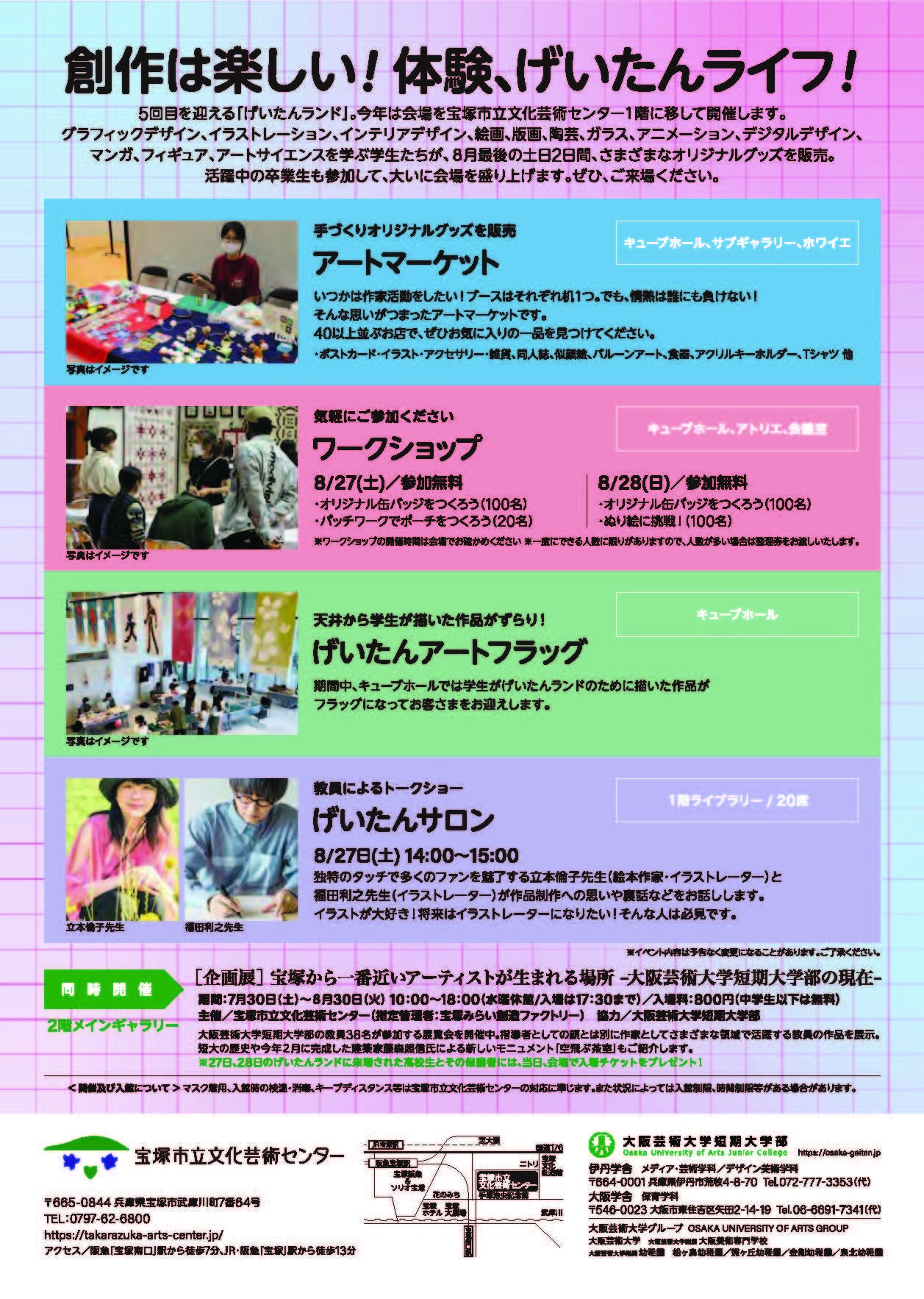 夏だ!アートだ!お祭りだ! 5度目となる今回は文化芸術のまち、宝塚市立文化芸術センターで開催! 高校生・中学生のための大グループ展『げいたんランド2022』