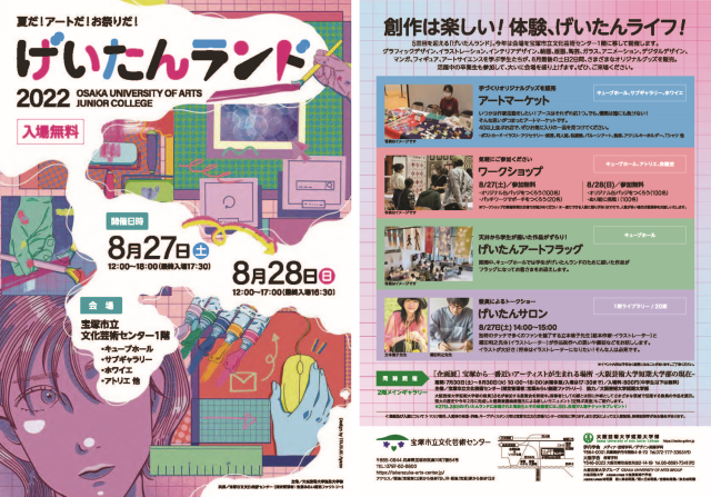 さらに「げいたんランド2022」にご来場いただいた高校生及びその保護者のみなさまには、「宝塚から一番近いアーティストが生まれる場所―大阪芸術大学短期大学部の現在」展の入場チケットをプレゼントいたします。