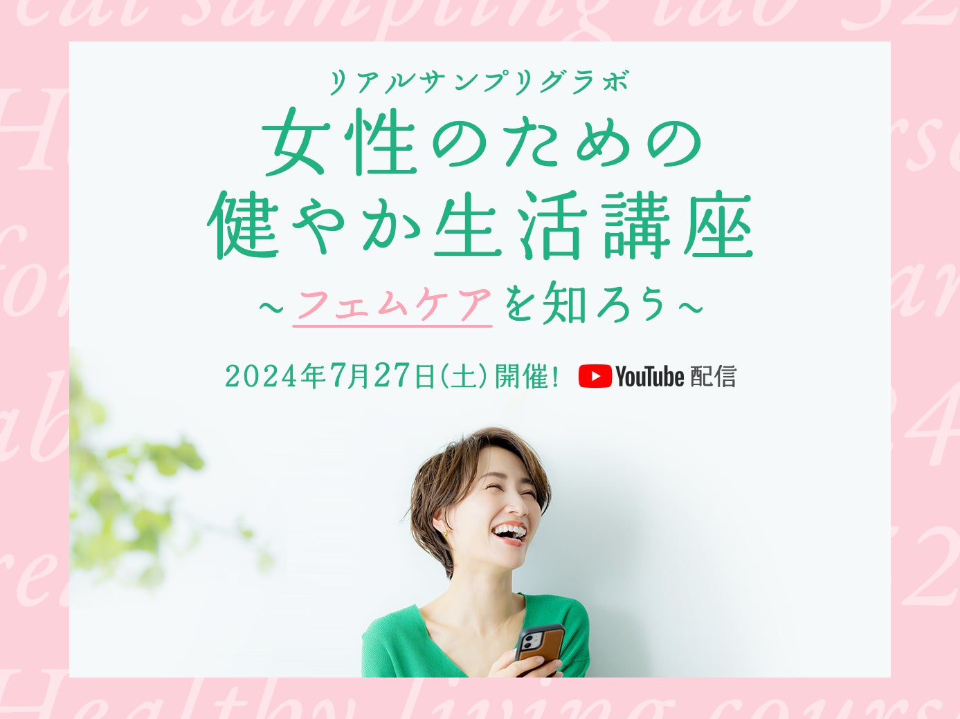 お得に商品が試せる参加無料イベント「リアルサンプリングラボ『女性のための健やか生活講座~フェムケアを知ろう~』」を、YouTubeプレミア配信にて7月27日(土)に開催