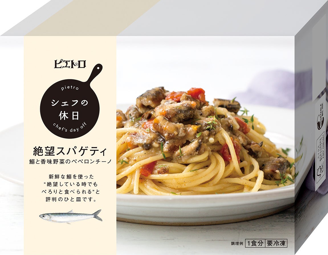 レストラン生まれのピエトロが自信をもってお届けする、プレミアム冷凍食品「シェフの休日」シリーズにも絶望スパゲティがございます。スパゲティ・ソース・具材がセットになったものを、耐熱皿に置き、電子レンジで温めるだけ!お店で味わえるような本格的な一皿をお召し上がりいただけます。