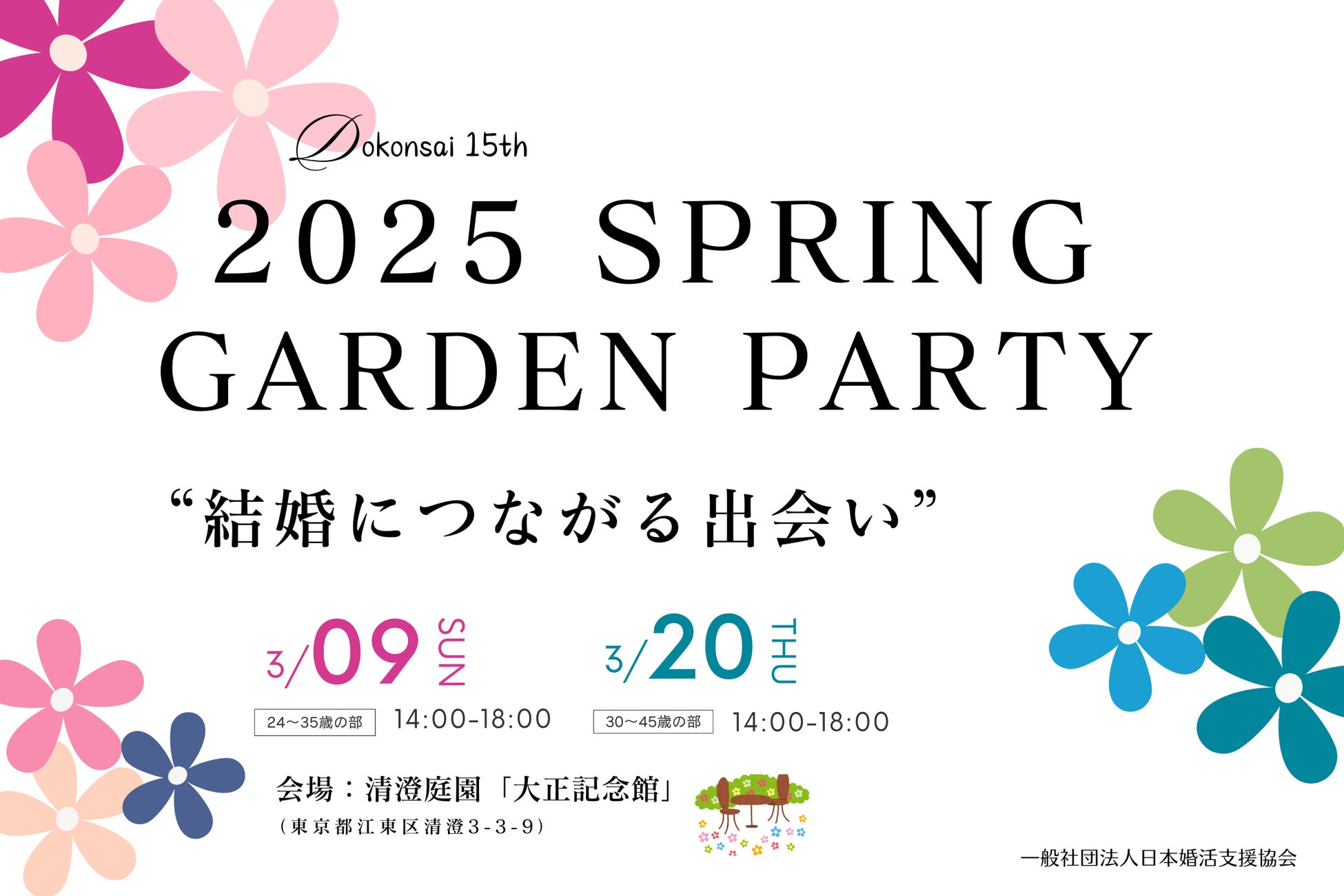 一般社団法人日本婚活支援協会(所在地:東京都港区、代表理事:後藤幸喜)は、2025年も都立庭園「清澄庭園」(所在地:東京都江東区)を会場に、結婚意欲のある独身者を対象とした婚活イベント「独婚祭15th 春のガーデンパーティー」を、年代別に2回、3月9日(日)と3月20日(木・祝)に開催します。