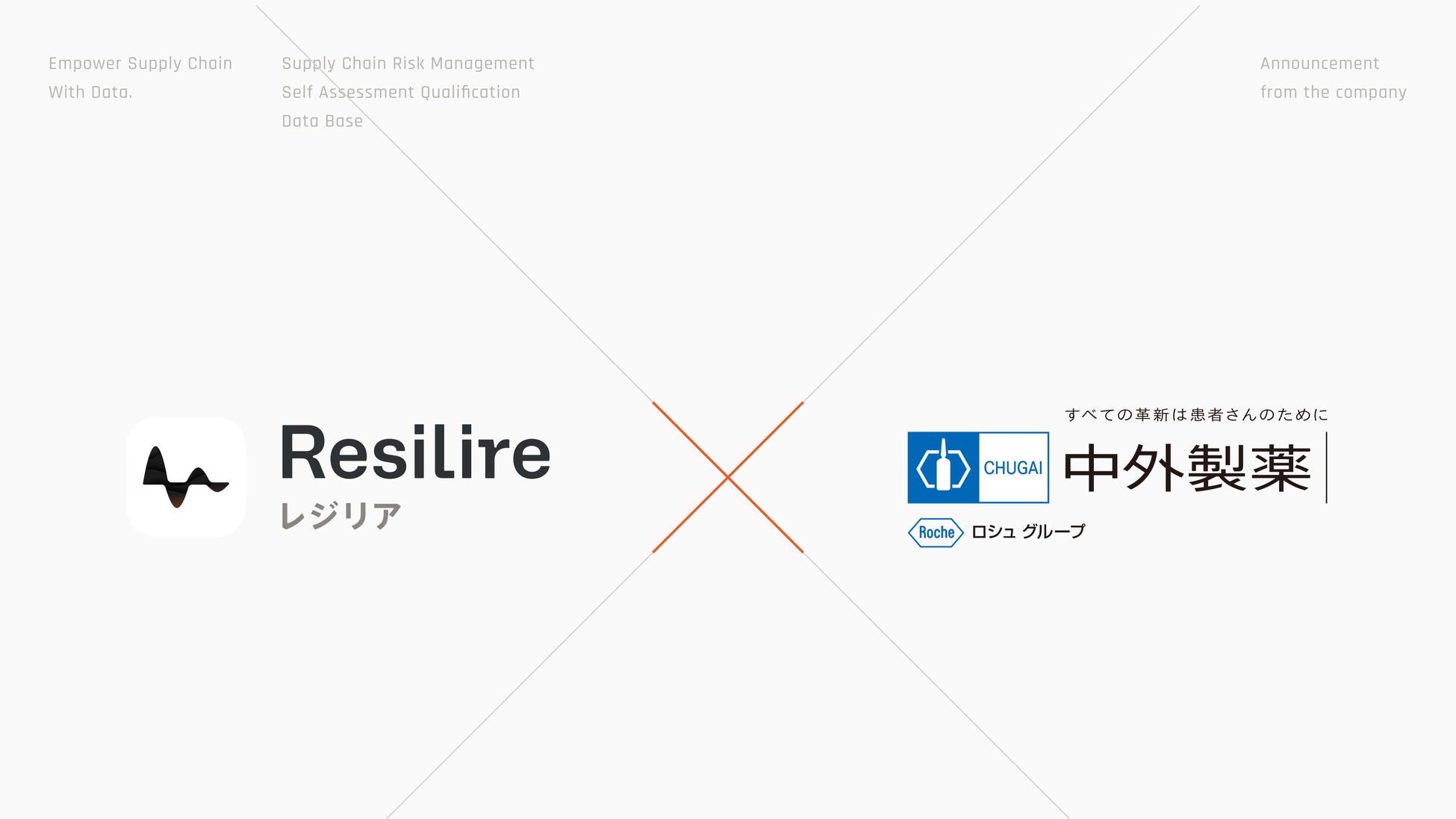 株式会社Resilire(本社:東京都港区、代表取締役CEO:津田 裕大)は、当社が開発・提供するサプライチェーンリスク管理クラウドサービス「Resilire(レジリア)」について、中外製薬株式会社(本社:東京都中央区、代表取締役社長 CEO:奥田 修、以下「中外製薬」)が導入したことをお知らせします。