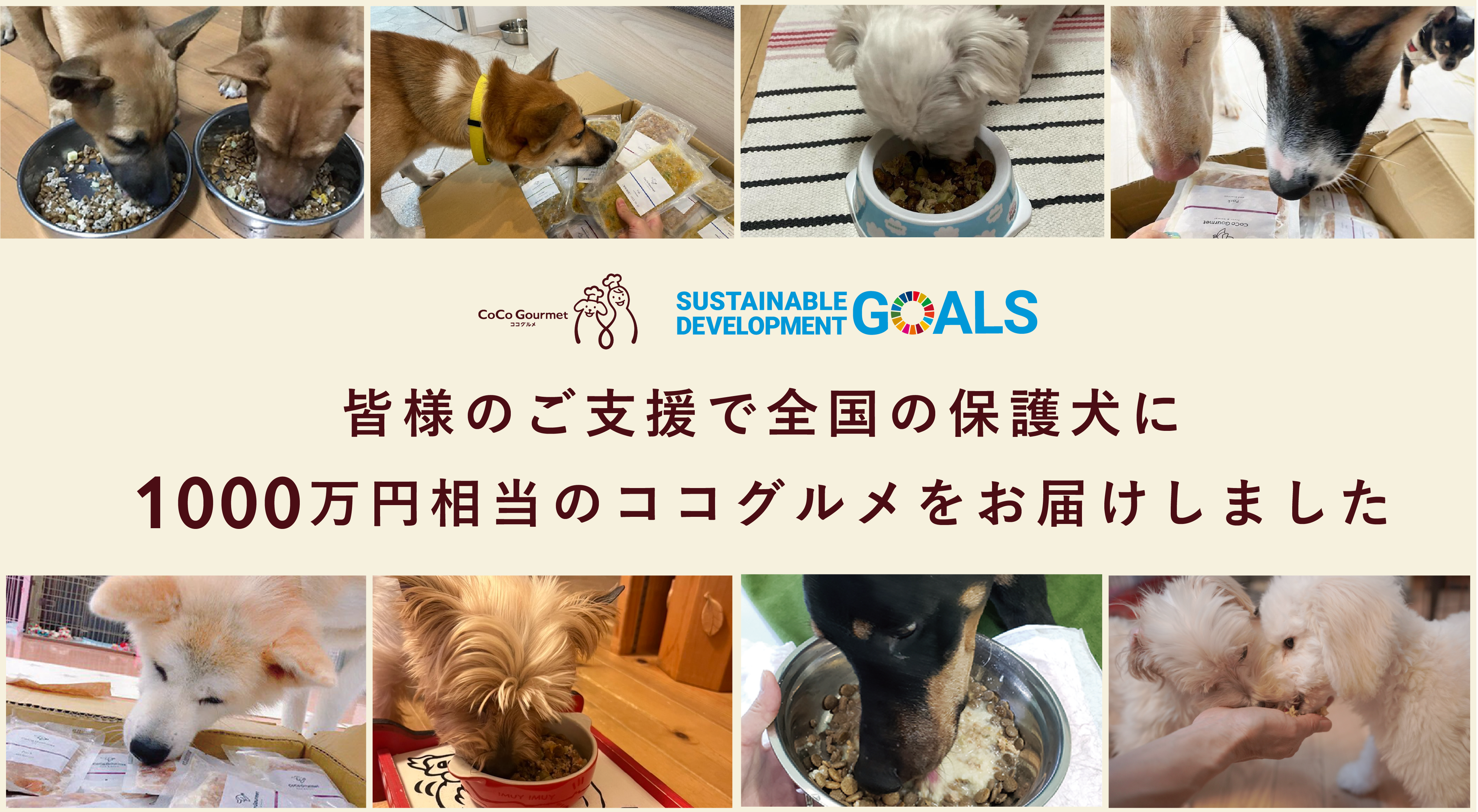 保護犬、動物愛護団体へ寄付したココグルメが総額1000万円相当・累計58,000食となりました。