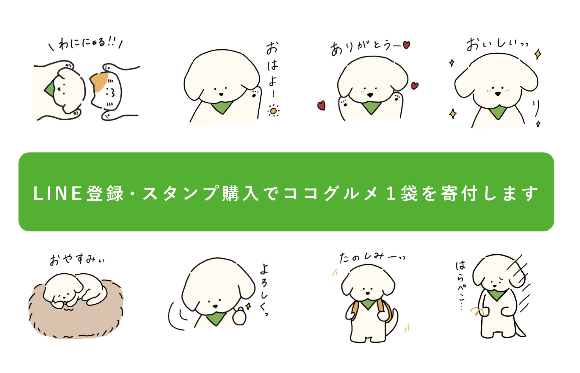 ■LINE登録・スタンプ購入でココグルメ1袋を寄付します