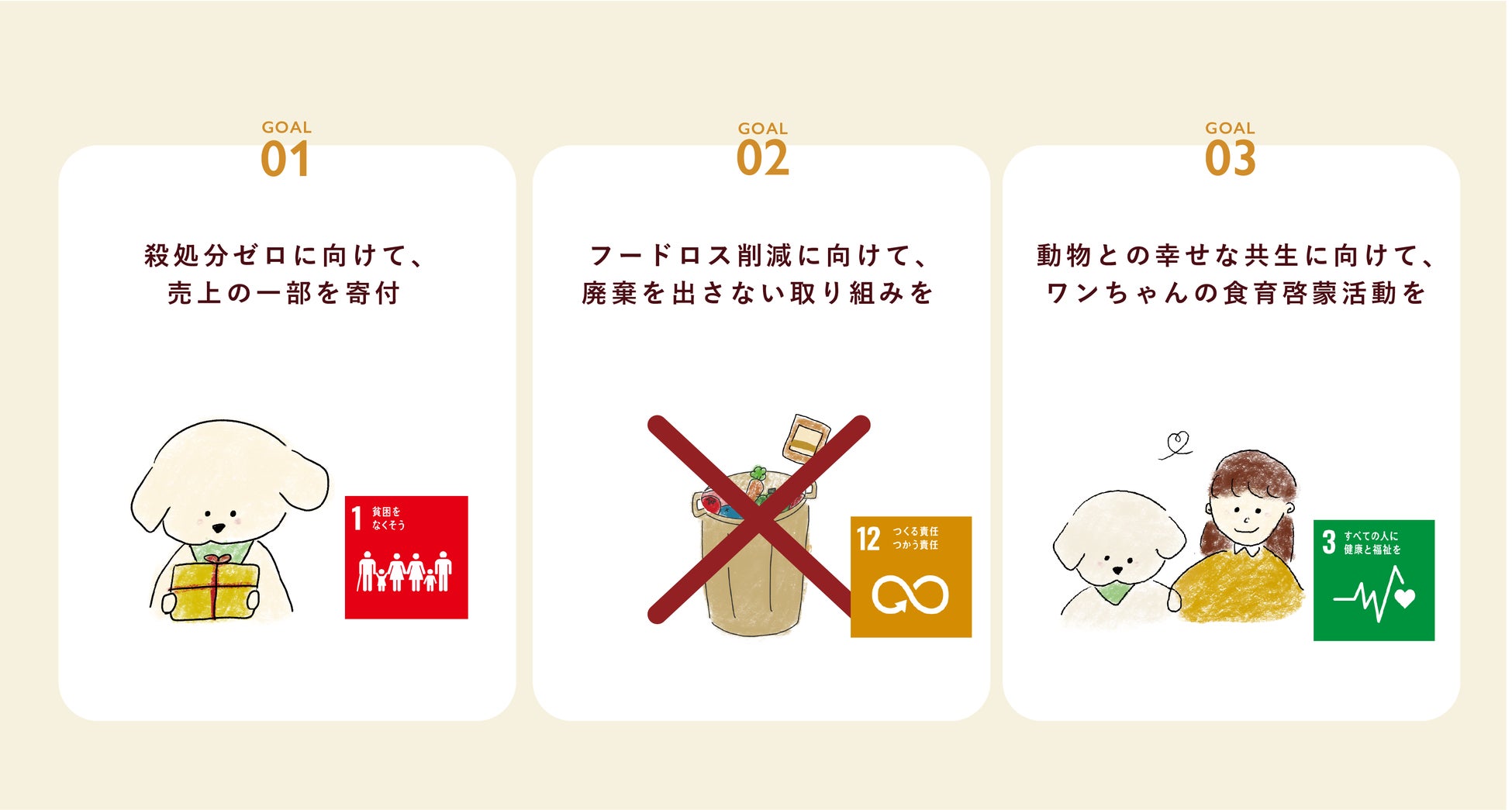 “どの命も脅かされることなく、生きる喜びを感じて欲しい”。その想いで、当社では参加型の支援プロジェクト「WAN I NYARU(わににゃる)」を立ち上げ、動物と人間の幸せな共生社会を目指すSDGsの実現へ尽力して参りました。今後も、一頭でも多くの保護動物に美味しいごはんと幸せを届け、ひとりでも多くの人たちが動物福祉に携わる機会を提供するために、動物福祉活動に取り組んで参ります。