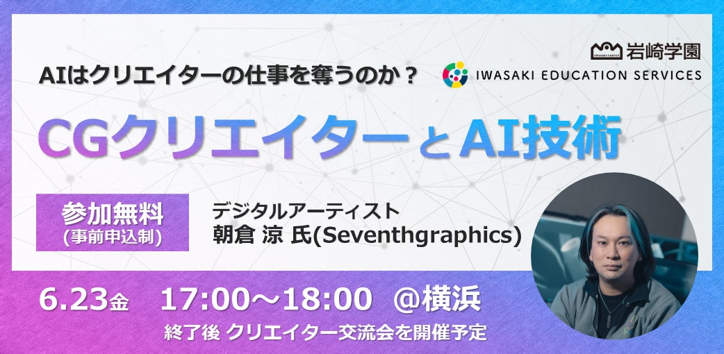 6月23日(金) デジタルクリエイター朝倉涼氏による「CGクリエイターとAI技術」セミナー・クリエイター交流会を開催