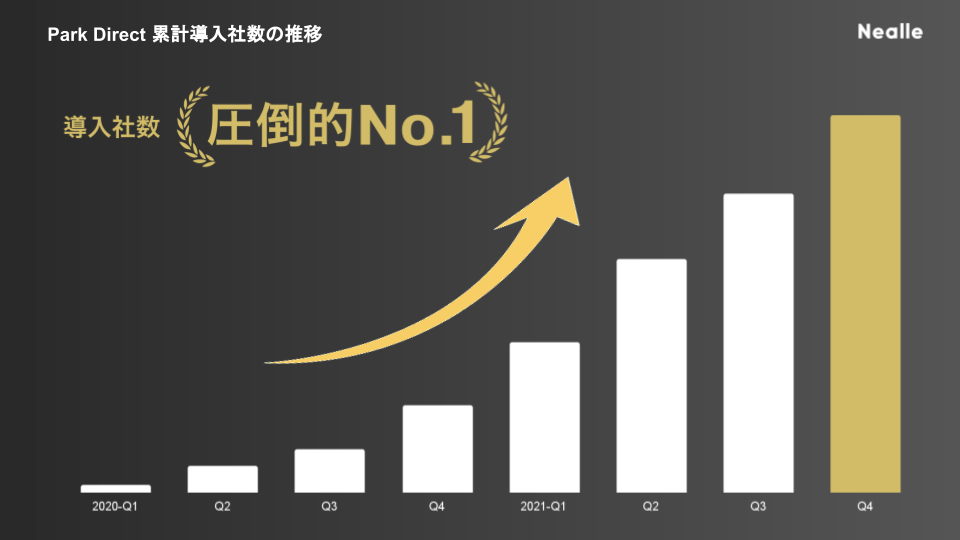 そのような中、多くの管理会社様より駐車場業務にまつわるご相談を頂戴し、ニーリーは2019年11月にモビリティ領域のSaaSとして、業界初、駐車場のオンライン契約を実現するサービス「Park Direct」をリリースしました。以降、多くの管理会社様および借主様にご利用いただき、2020年、2021年には、導入社数や掲載台数において、2年連続業界No.1(※2)を達成致しました。