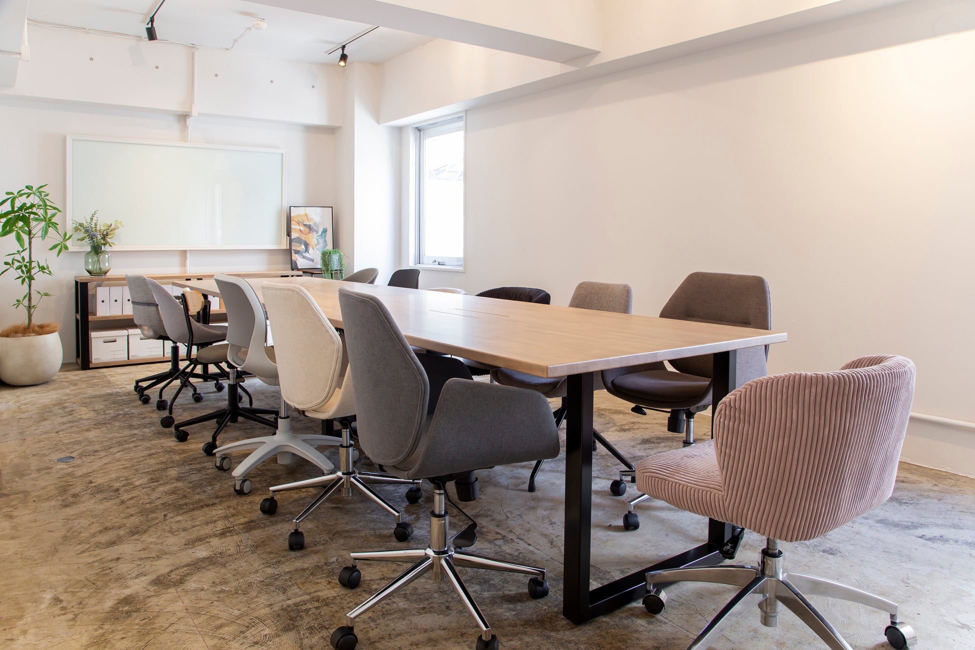 大会議室にラバーウッド アッシュグレーの特大テーブルを導入。控えめのナチュラルな色合いで、積極的に発言したくなるような和やかな雰囲気を創出しました。特大サイズのテーブルは最大400×100cmまでサイズオーダーができ、打ち合わせ用テーブルやフリーアドレスデスクとしてオフィスに合わせたサイズをお選びいただけます。