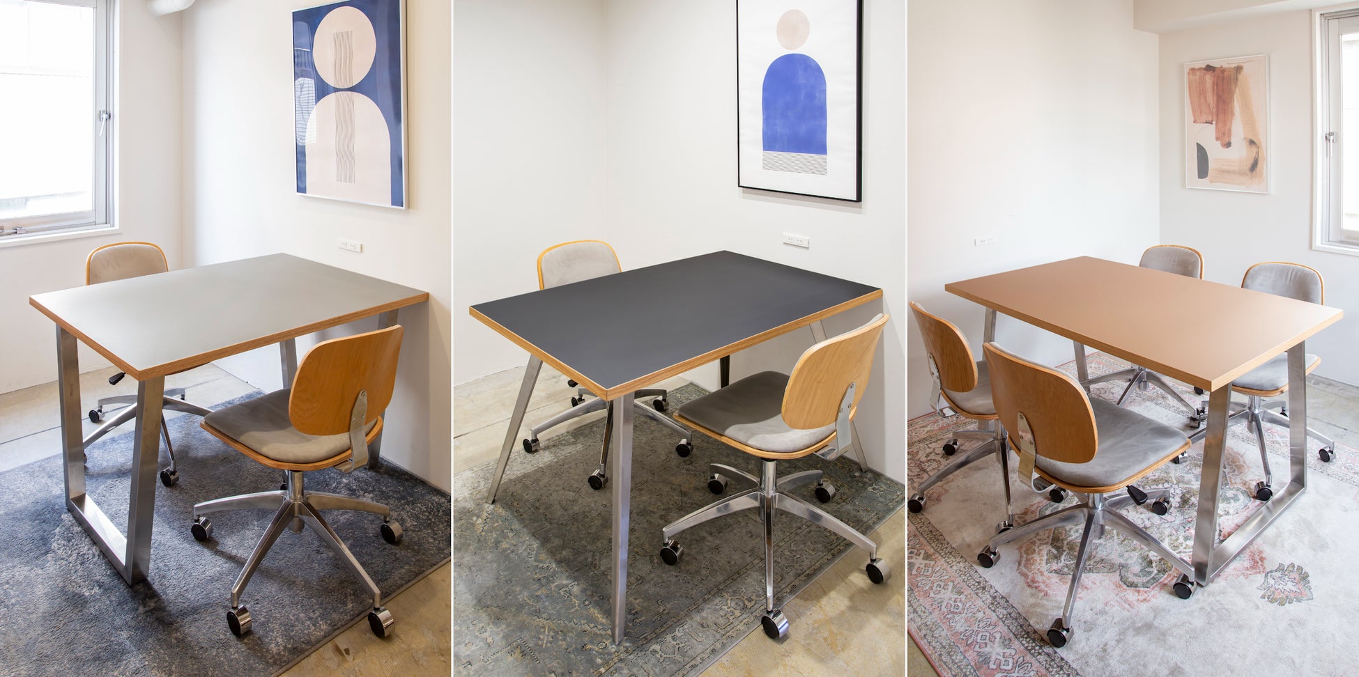 また、様々なタイプ・カラーのオフィスチェアを取り揃えているので、座り心地を試しながらテーブルとのコーディネートイメージを膨らませることができます。