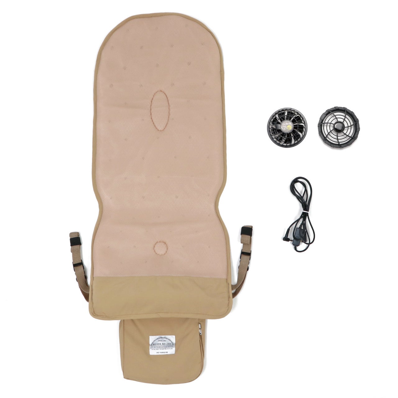 本製品は、ペット用カートに取り付けてファンで通気穴のあるマットに空気を送り込み熱を逃がします。マットは、ファンに近い部分の通気穴を小さく、遠い部分を大きくする「グラデーションエアホール」構造を採用することで、しっかり全体に風が通り抜けます。ファンは3段階に風量調節が可能で、市販の保冷剤をファンボックスのポケットに入れると、さらにひんやり爽快な風を送ることができます。送風用モーターは静音設計で、愛犬にストレスを与えません。当社で発売中のペットカート「スムーカシリーズ」のほぼすべてのモデルに取り付けることができます。