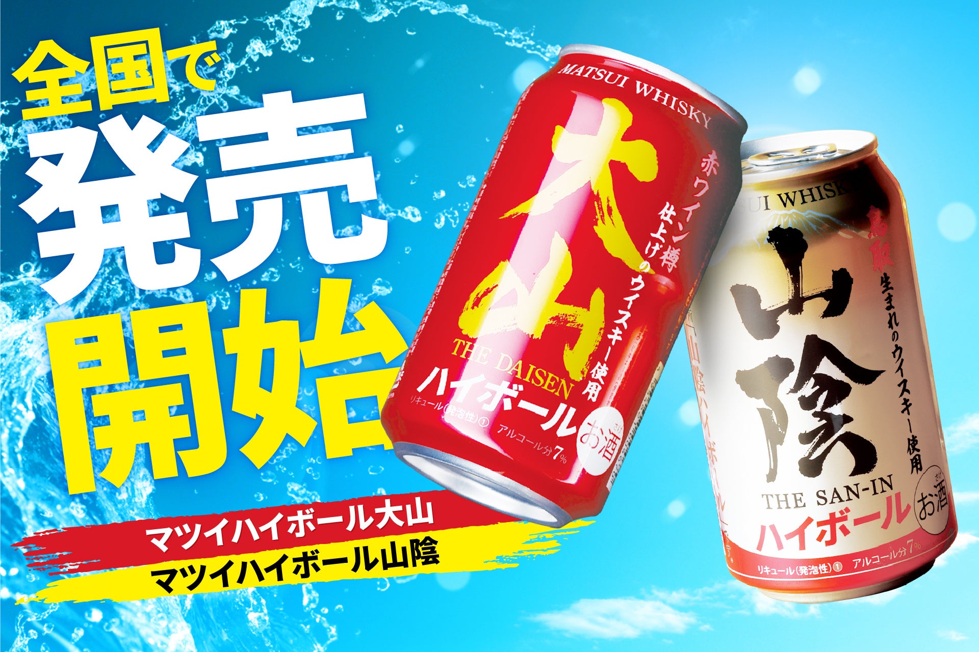 マツイウイスキーの人気商品、「ブレンデッドウイスキー 山陰」と「マツイウイスキー 大山」をそれぞれハイボール缶にして発売。