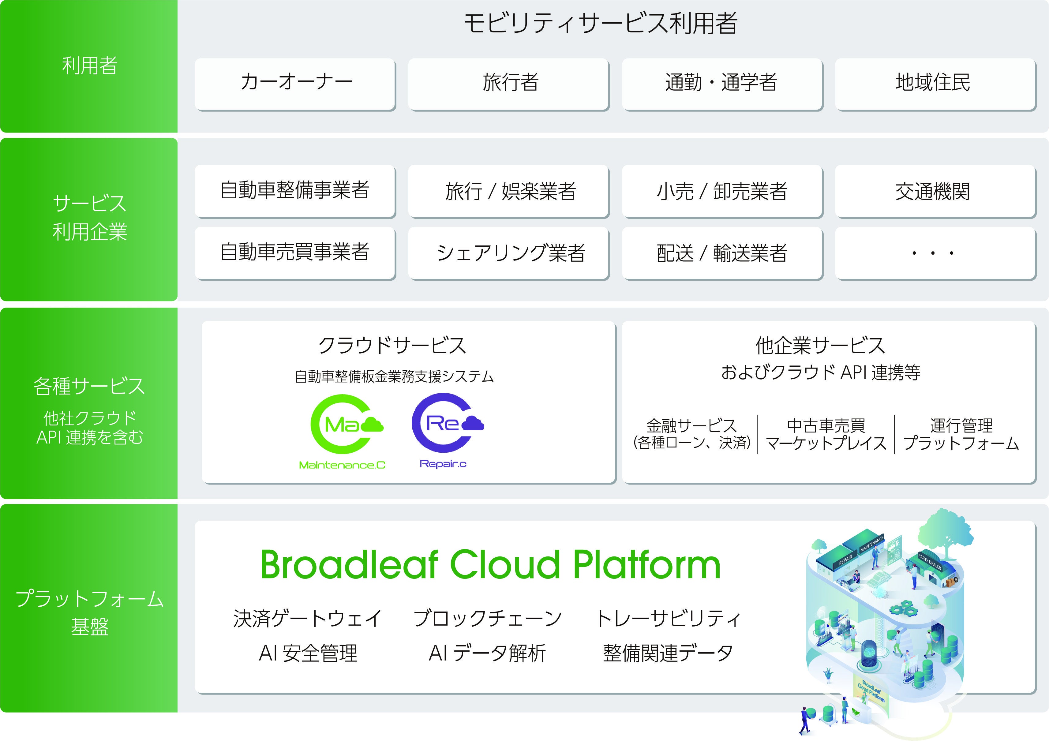 またブロードリーフといたしましては、この度の協業により、「Broadleaf Cloud Platform」上の受発注プラットフォームを活用し、モビリティ産業の事業者へ業務効率化や監査、トレーサビリティの仕組みを提供することによって、これまで以上にカーオーナーのみなさまへ安心・安全の提供を促進する環境整備を目指してまいります。