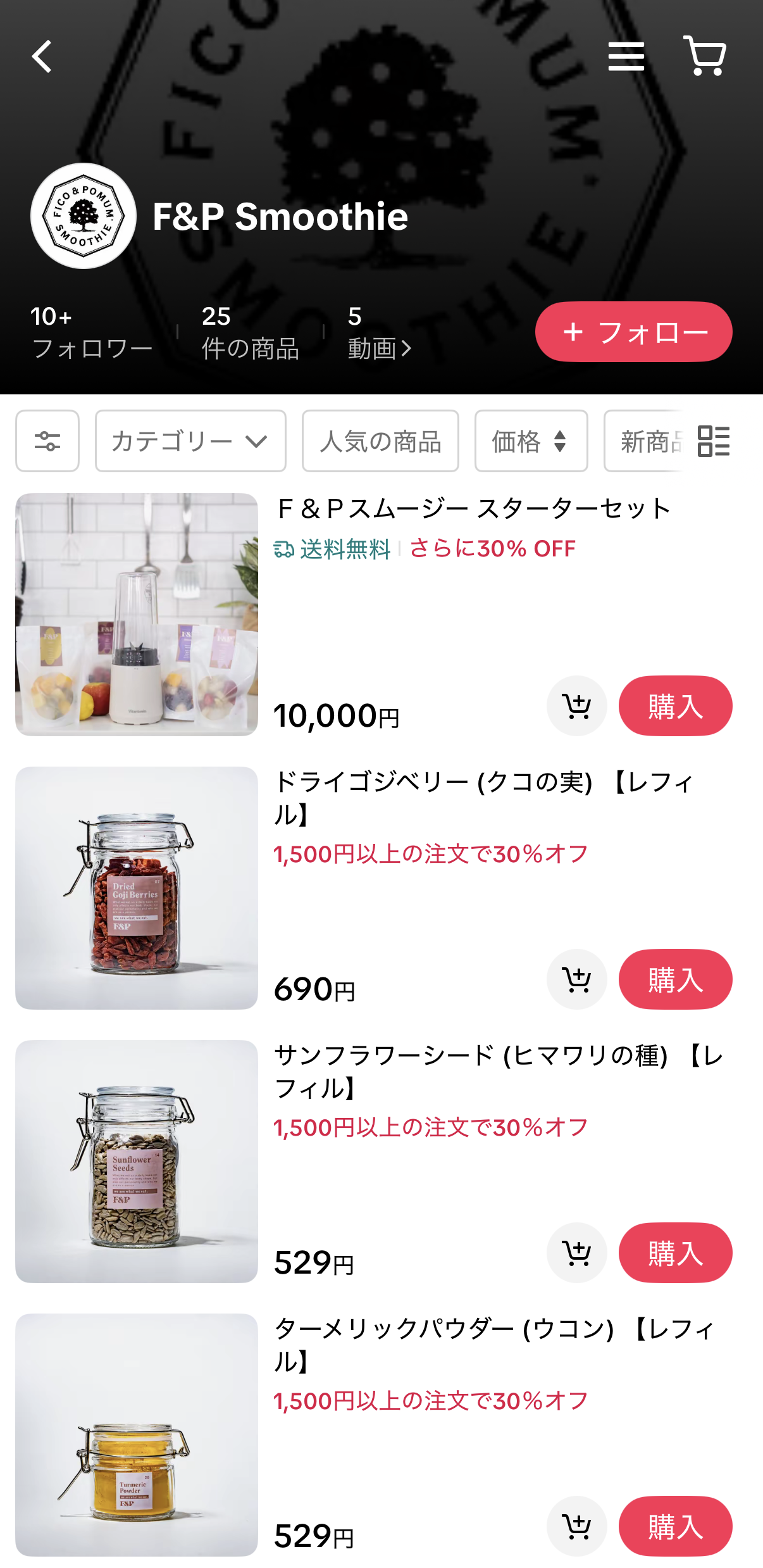 TikTok Shopでは、F&Pの人気商品を中心に展開していきます。