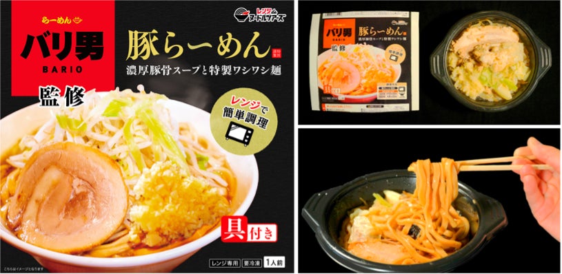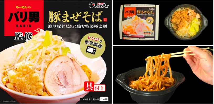第一弾としてリリースする二郎系の「豚らーめん」「豚まぜそば」は、都内に複数店舗をかまえる大人気の二郎インスパイア系ラーメン店「らーめんバリ男」が監修。濃厚豚骨だれに絡む特製麺が特徴の一杯です。