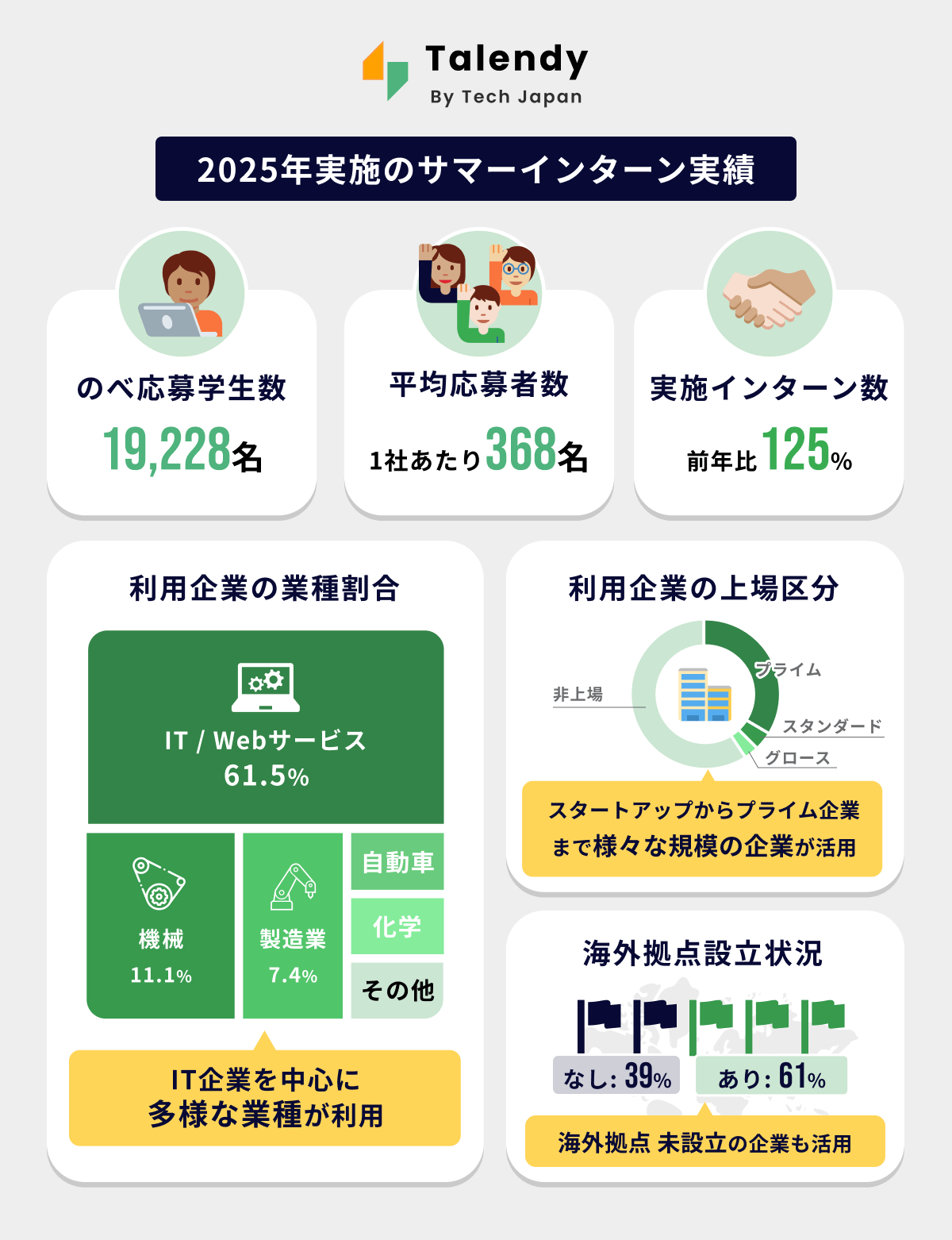 2025年にTalendy Hubを通じてインターンを実施した日本企業は前年と比べて増加し、実施されたインターンプログラムの数も前年比25%増と大幅に増加しました。