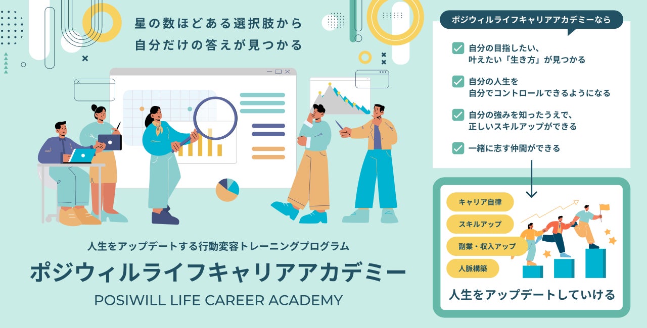 新サービス『ポジウィルライフキャリアアカデミー』をリリース。人生のアップデートを目指すサブスクリプション型サービスです。7月10日(水)19:00より、後藤宗明氏を招いたオンラインイベントも開催。