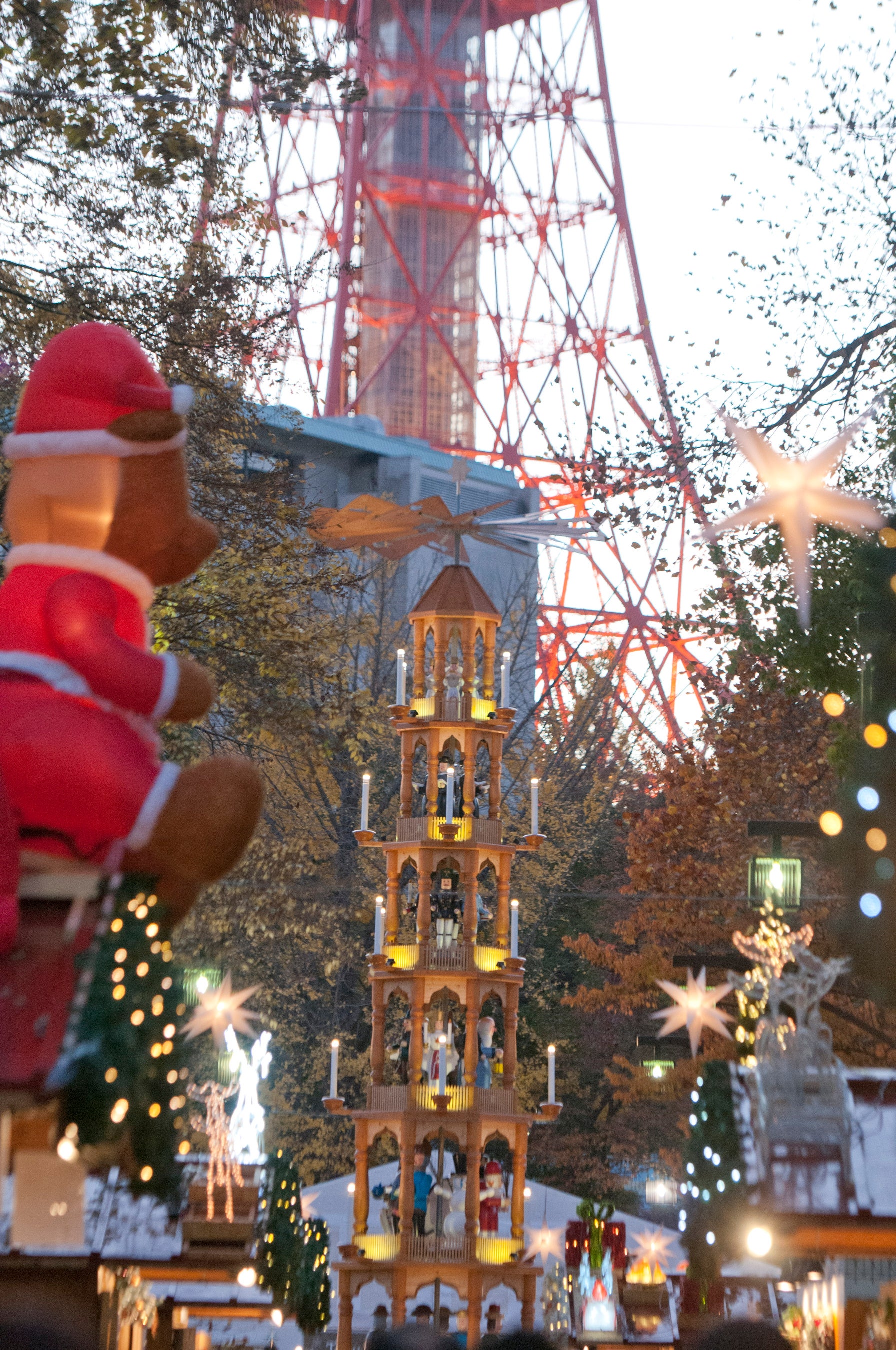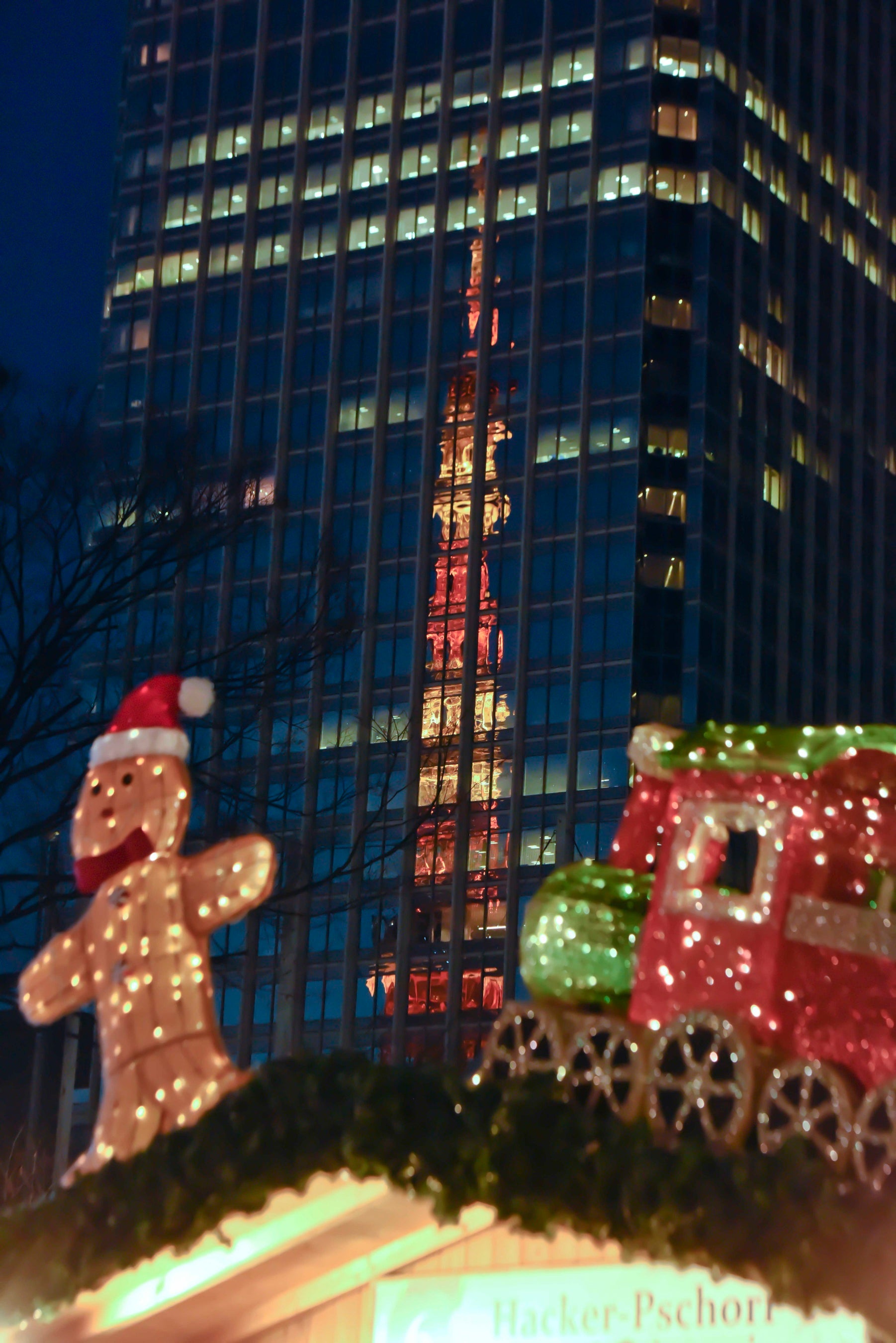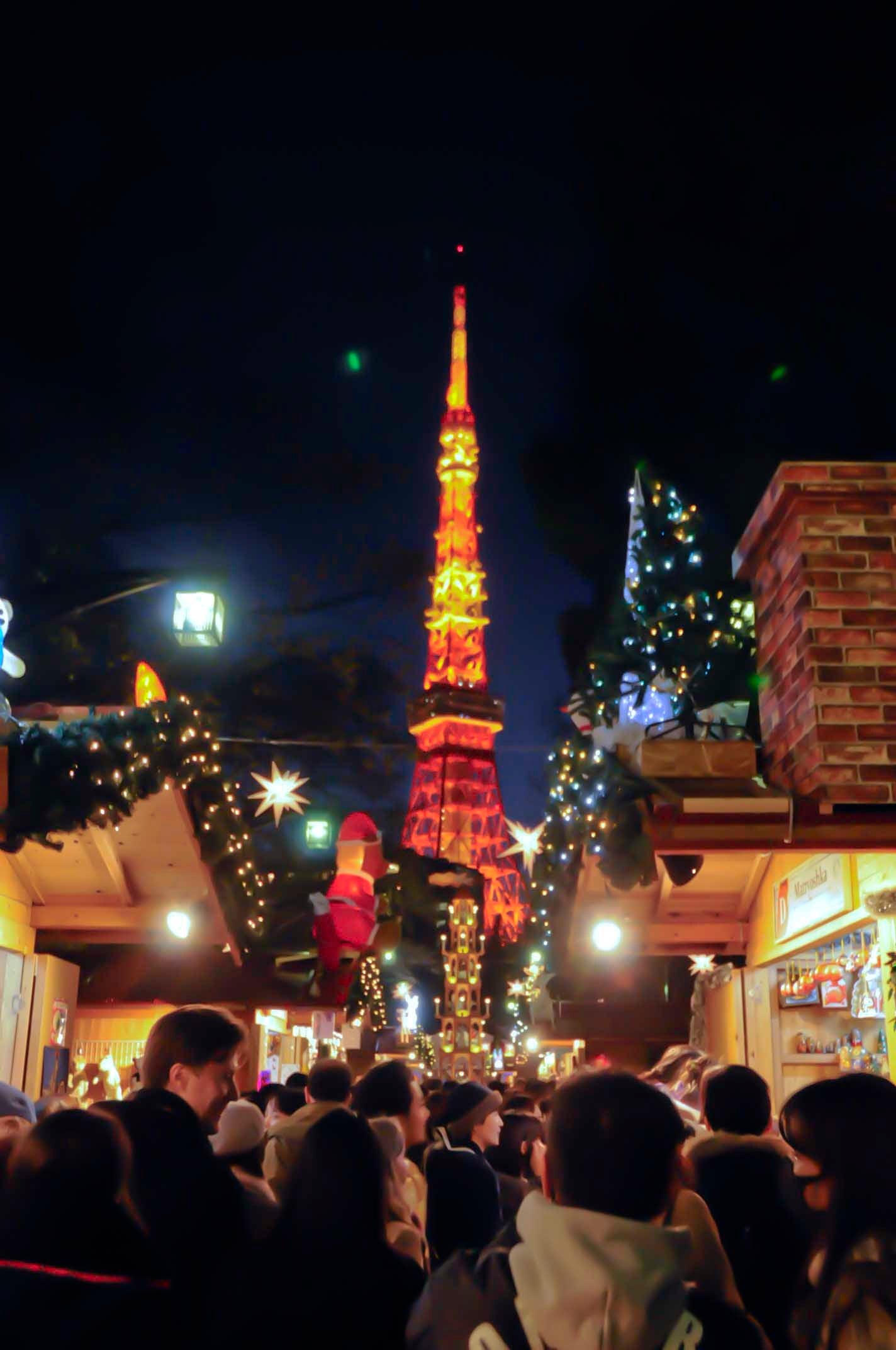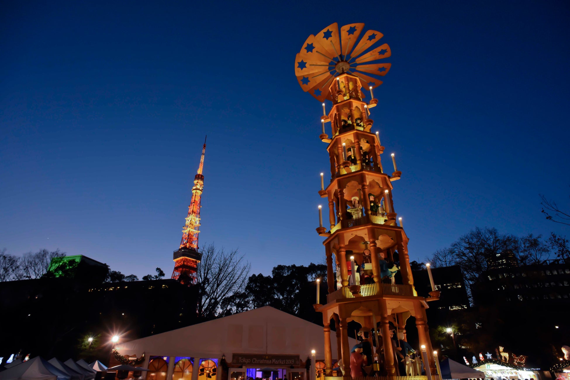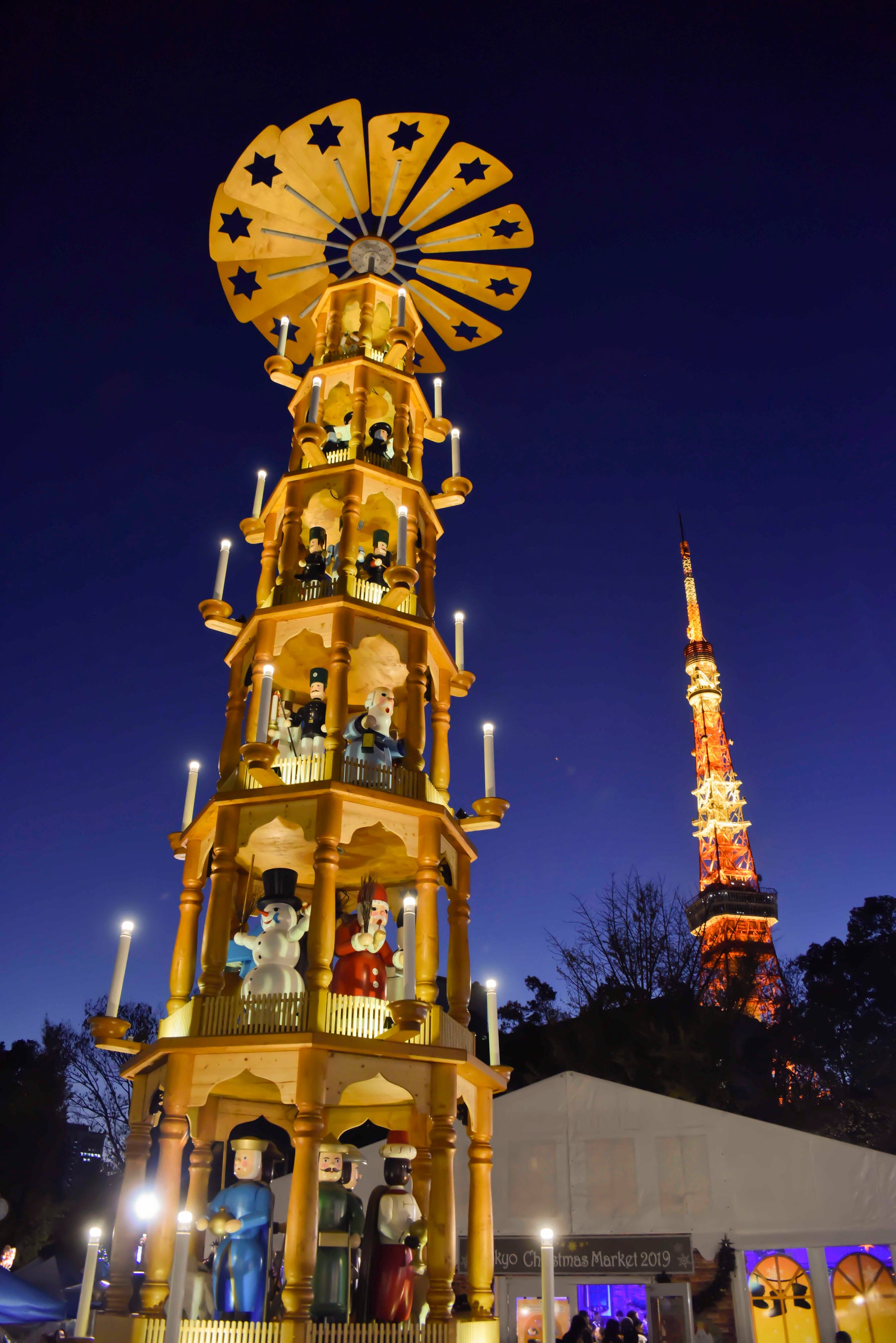 ドレスデンの伝統的な「クリスマスピラミッド」を中心に本場の雰囲気を表現。東京タワーを背景に本場ドイツの“高級感のある、あたたかなクリスマス”を体感いただけます。