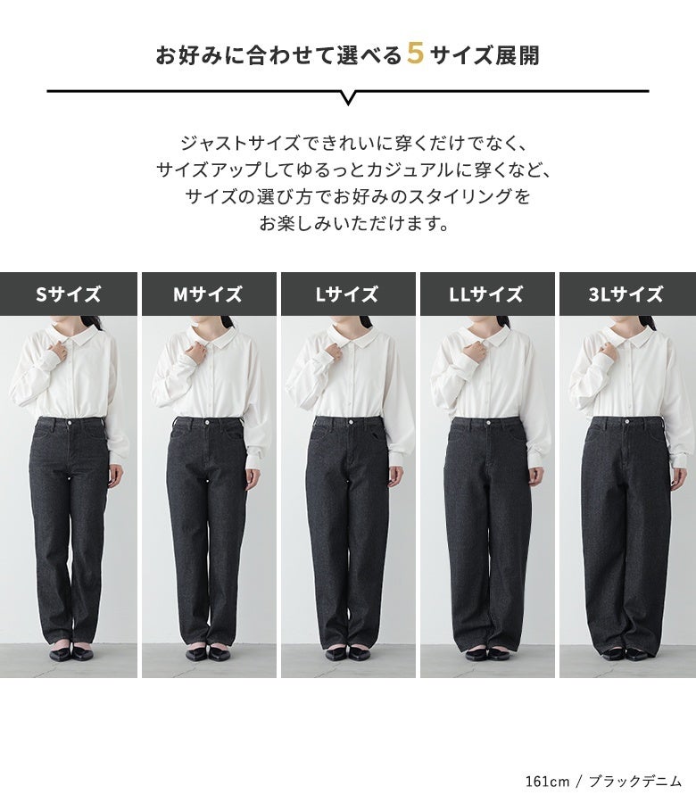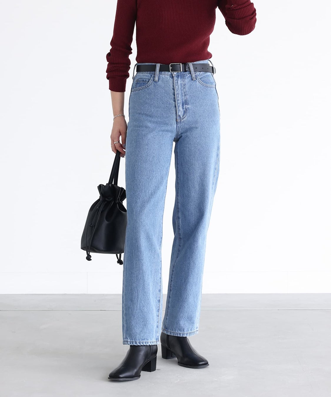 定番のカジュアルスタイルのほか、キレイめアイテムと合わせたコーディネートなど幅広く着回せる万能デニムパンツ。広がり過ぎないストレートシルエットで、ロング丈のトップスや羽織りともバランス良くコーディネートできます。