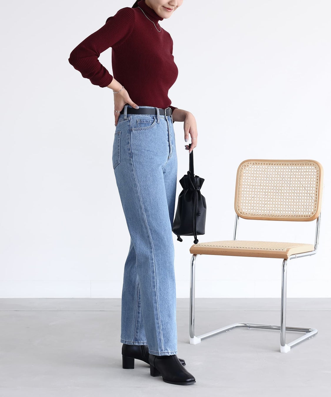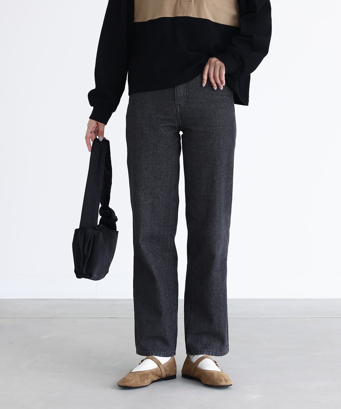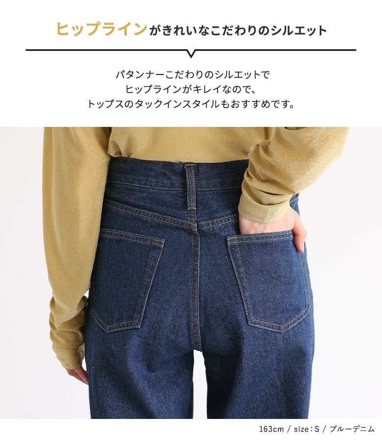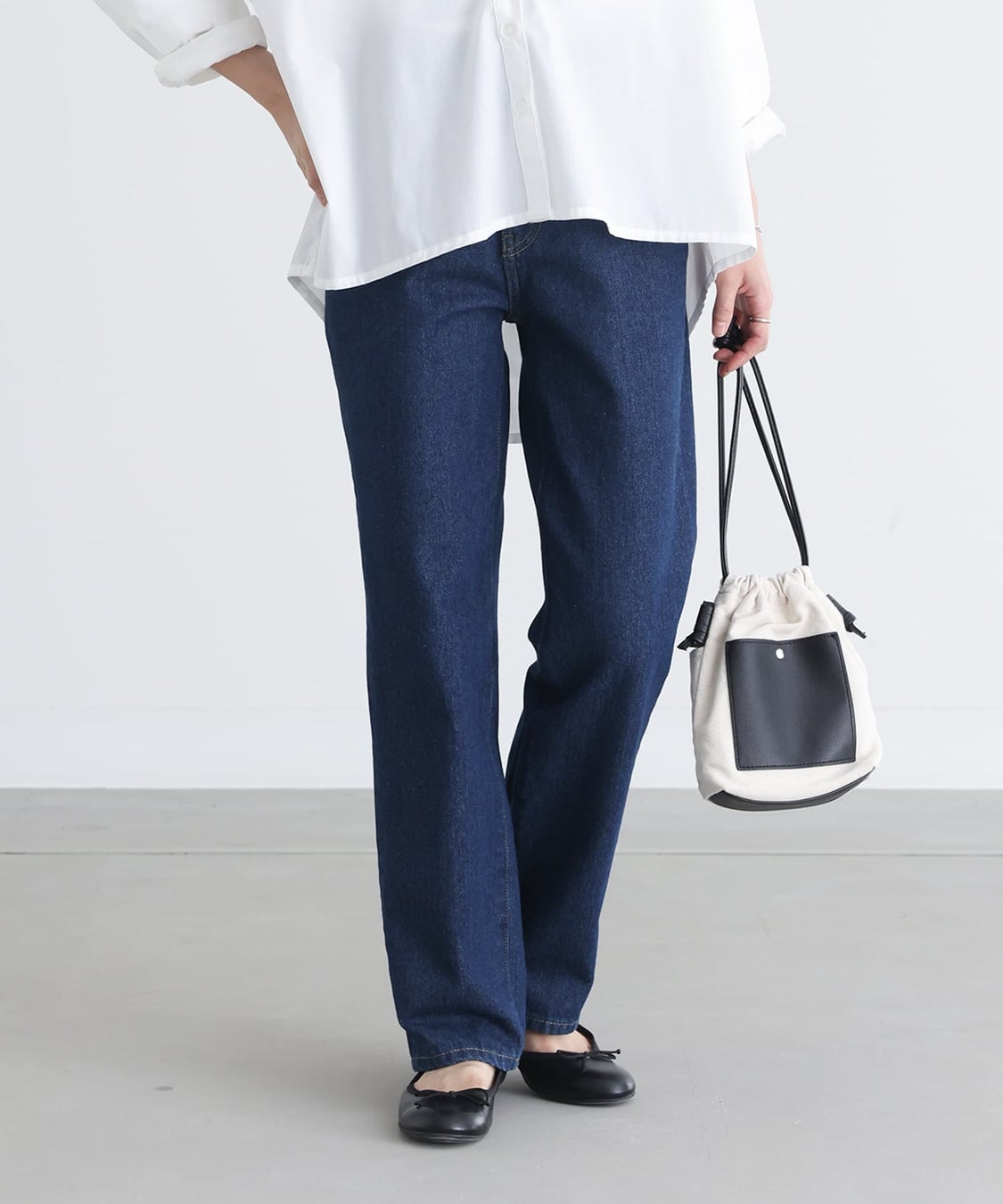シンプルなデザインで着回しやすい、ストレートシルエットのデニムパンツ。お尻回りがすっきり見える仕様で、トップスをインしてもキレイにご着用いただけます。