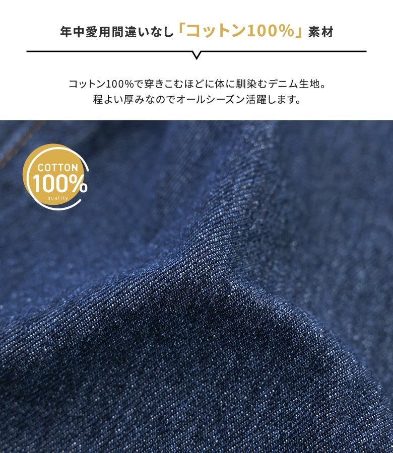 穿きこむほどに身体に馴染む、コットン100%の11.5オンスデニム。オールシーズン着用できる程良い厚みです。