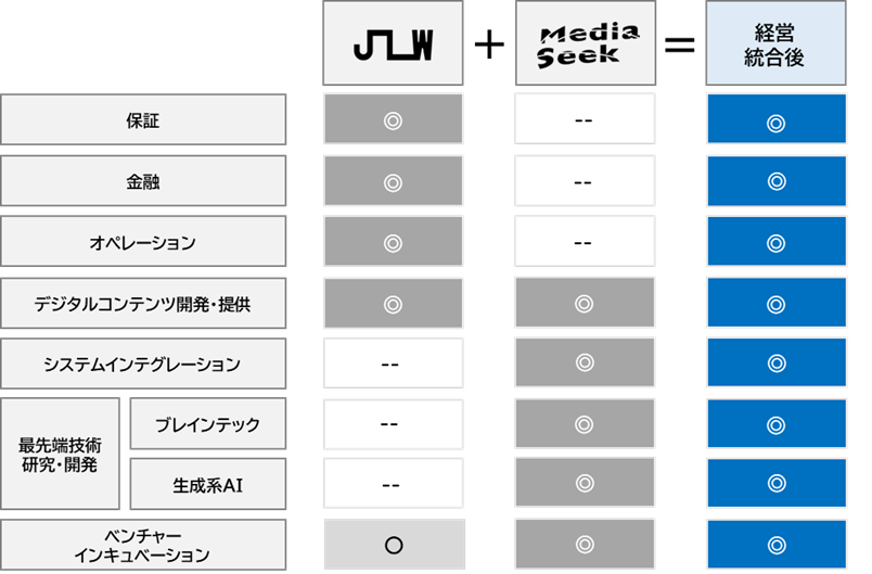 本経営統合により、日本リビング保証が有する保証・金融・BPOといった機能と、メディアシークが得意とする(システムインテグレーション)受託やデジタルコンテンツ開発の機能が加わることで、今後より幅広い顧客企業のビジネスを拡大・拡張(Expand)するビジネスパートナーとしての価値提供を目指してまいります。