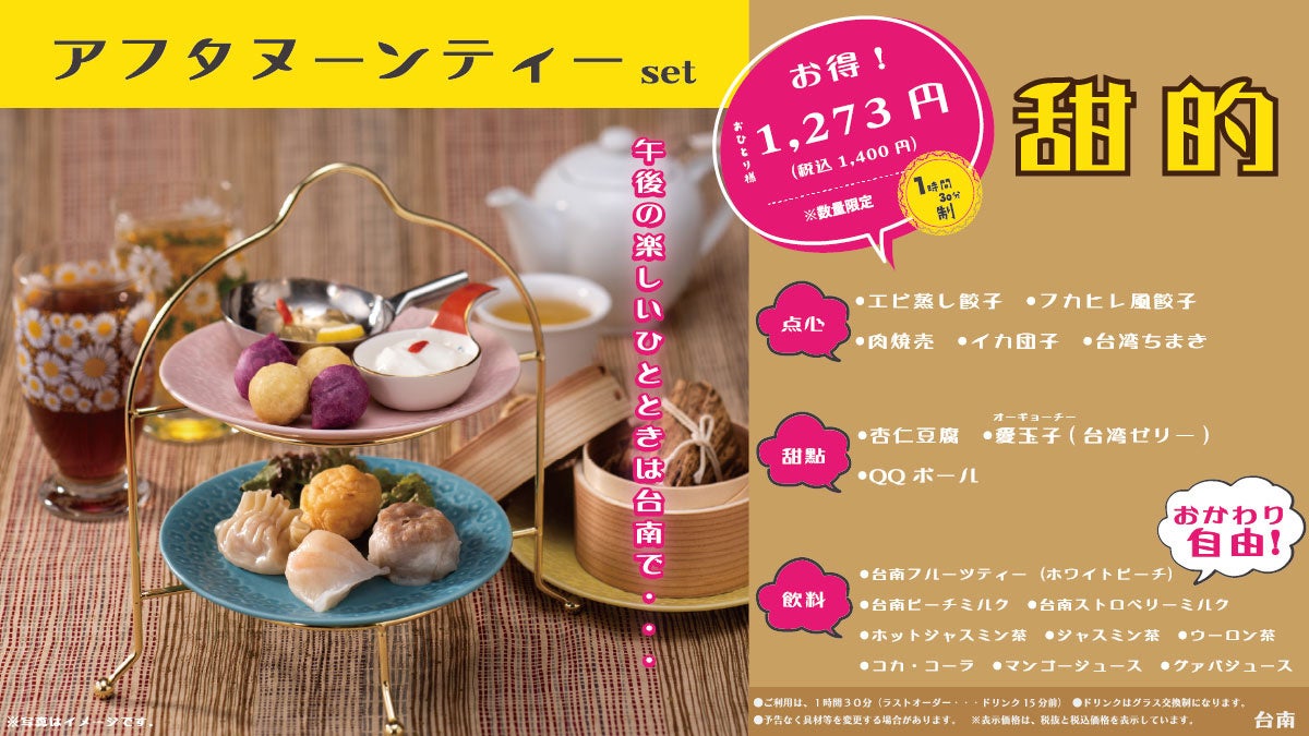 新たに「飲茶食べ飲み放題」、「アフタヌーンティーセット」など新メニューが登場