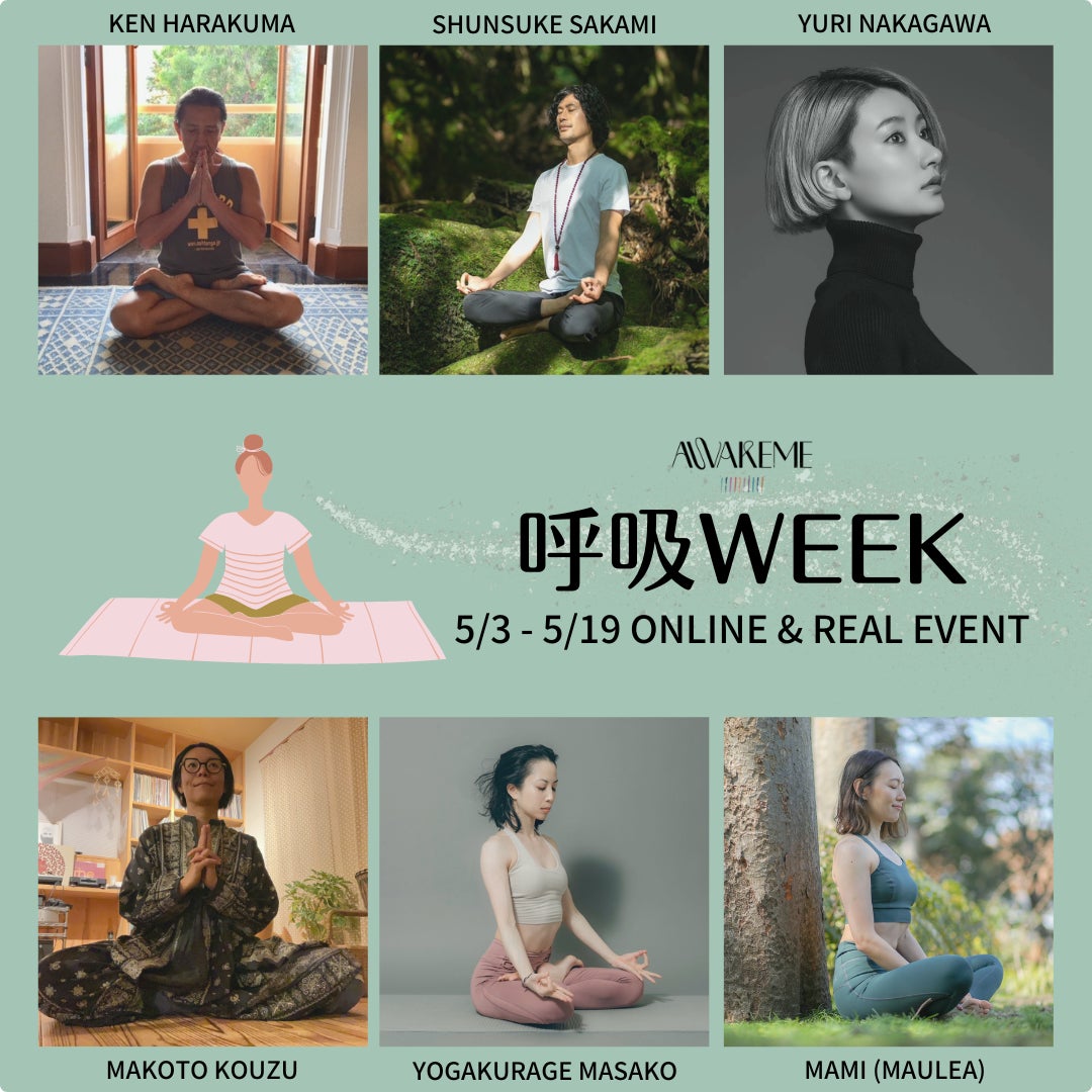 5月9日は「呼吸の日」。ウェルネスパーティAWAKEMEでは「呼吸の日」に因んで、5月3日〜5月19日の期間に「呼吸」にフォーカスしたオンラインレッスンとリアルイベントを全7回開催します。