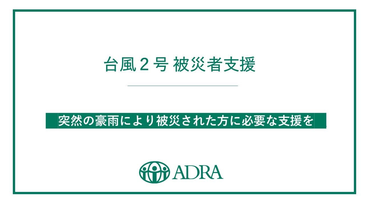 認定NPO法人ADRA Japan (アドラ・ジャパン、 所在地:東京都渋⾕区神宮前1-11-1 理事長:柴⽥俊生)は、台風2号の襲来前から状況を注視し、6月2日からは、各地の被害状況や支援団体の動きなどに関する情報収集に努め、支援の調整に取り組んできました。