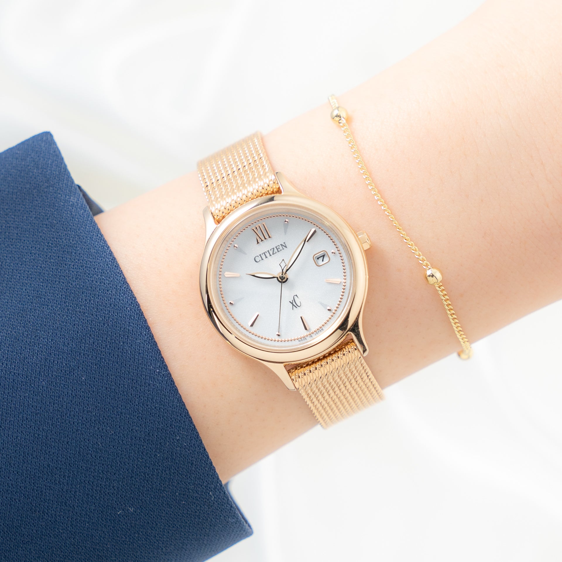 上品で洗練されたデザインと、定期的な電池交換不要の光発電エコ・ドライブや、時刻・カレンダー修正不要な電波時計、防水機能など、日常をサポートする機能性を融合させたウオッチブランド。確かな品質で常に正確な時を刻み続ける腕時計を通して、前を向く自信と安心感を提供しています。2015年、クロスシーは国内の中価格帯市場において、売上No1※女性用腕時計ブランドとなりました。クロスシーを選び、身に着けることで勇気がわき、前向きな気持ちになれるエンパワーブランドになることを目指し、これからもすべての女性を応援し続けます。