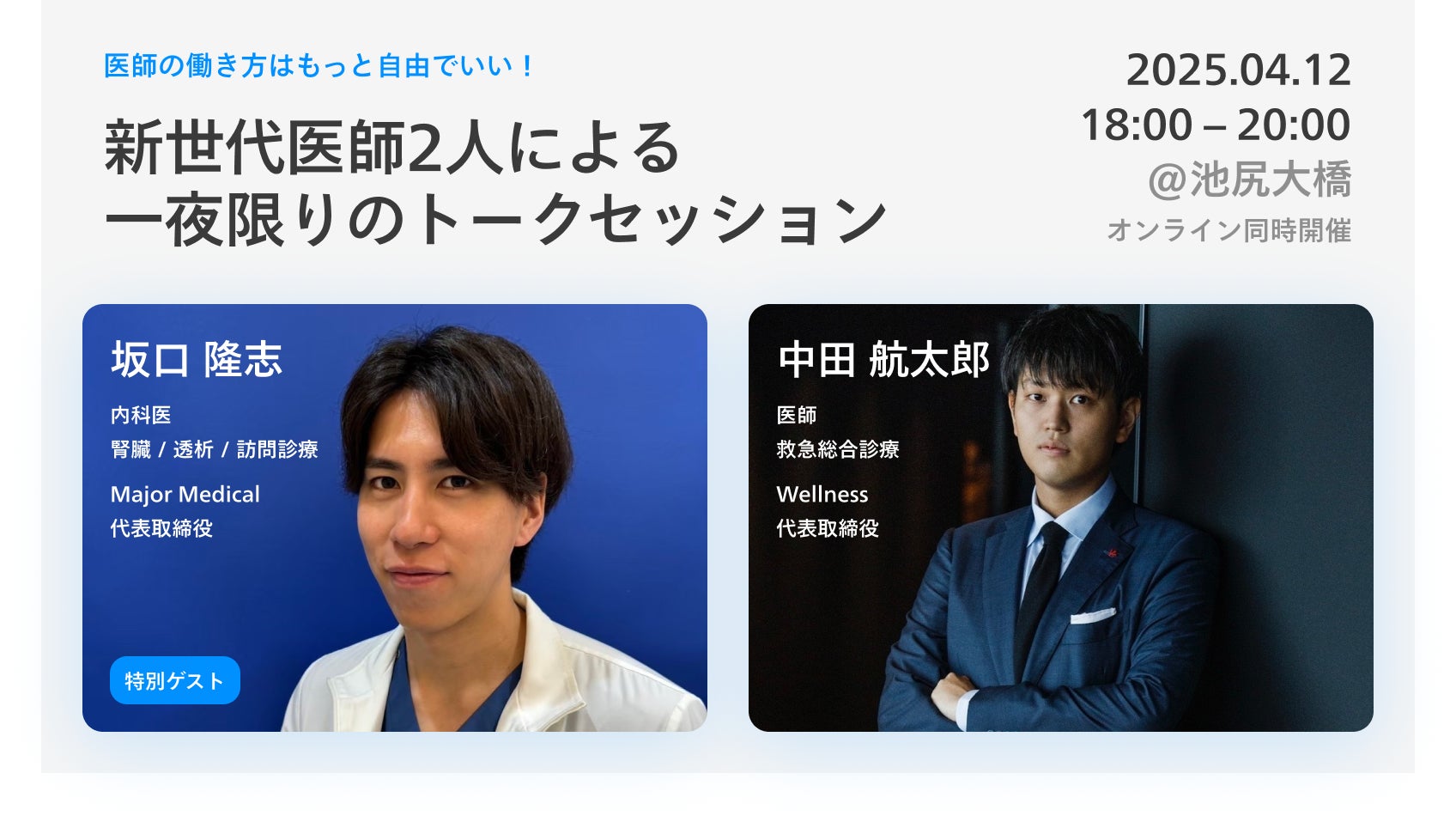 テーマ:「医師の働き方はもっと自由でいい!新世代医師2人による一夜限りのトークセッション」