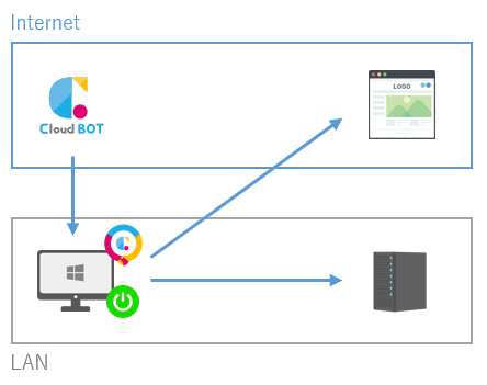 既にCloud BOT Agent インストール版(Windows, Mac OSに対応)と株式会社アイ・オー・データ機器(本社:石川県金沢市、代表取締役会長兼社長:細野 以下アイ・オー・データ機器)が提供するLAN DISK 内にインストールされたCloud BOT Agent LAN DISK版を提供しておりますが、いずれもローカルネットワーク内に設置された端末内のCloud BOT Agentを使用し機能提供を行います。