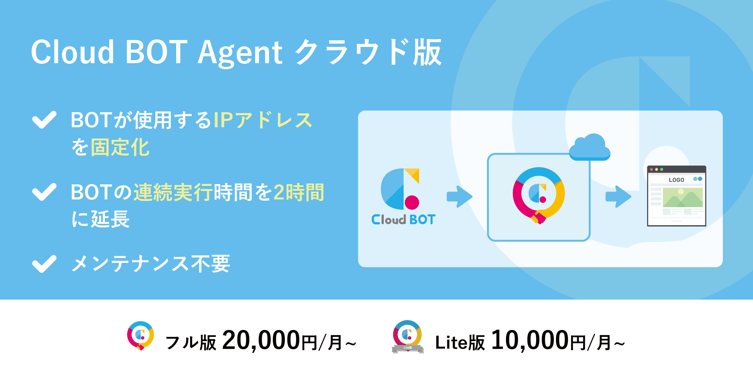 クラウドBOTが固定IPやRPAの長時間実行に対応『Cloud BOT Agent クラウド版』