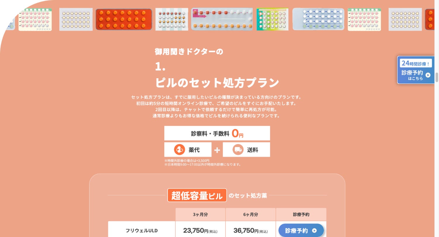 診察料・手数料0円、最短5分の診療でルナベル・フリウェル・トリキュラーなど日本のピルを世界中に海外発送。3ヶ月分23,750円〜の割安セットプランで定期配送も対応。