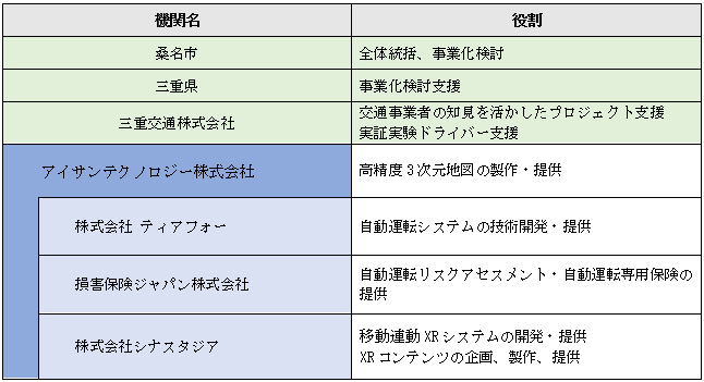 アイサンテクノロジー株式会社(本社:愛知県名古屋市、代表取締役社長:加藤 淳)、株式会社ティアフォー(本社: 愛知県名古屋市、代表取締役社長:武田 一哉)、損害保険ジャパン株式会社(本社:東京都新宿区、代表取締役社長:西澤 敬二)、および株式会社シナスタジア(本社:愛知県名古屋市、代表取締役社長:有年 亮博)は、三重県桑名市内で開催される自動運転車両試乗会に参加いたします。
