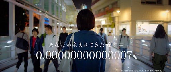 ムービーでは、ある女性の日常を、人生で遭遇するかもしれないさまざまな確率の話と絡めながら描いています。初恋の人と結婚する確率、野球観戦でホームランボールをつかむ確率など、多くは遭遇することなく過ぎていきますが、病気という確率に当たってしまいます。しかし、診察室で医師の説明を受ける女性は、何かを決意するように前を向きます。