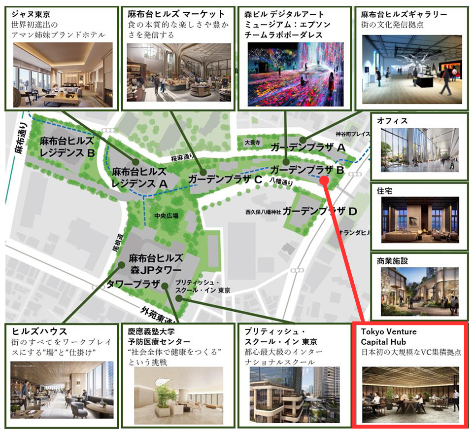「麻布台ヒルズ」のガーデンプラザB 4階・5階に誕生する「Tokyo Venture Capital Hub」は、日本初の大規模なベンチャーキャピタル(VC)の集積拠点です。日本ベンチャーキャピタル協会や日本のVC業界をけん引する独立系VC、日本の大企業を母体とするコーポレートベンチャーキャピタル(CVC)が合計約70社集まります。