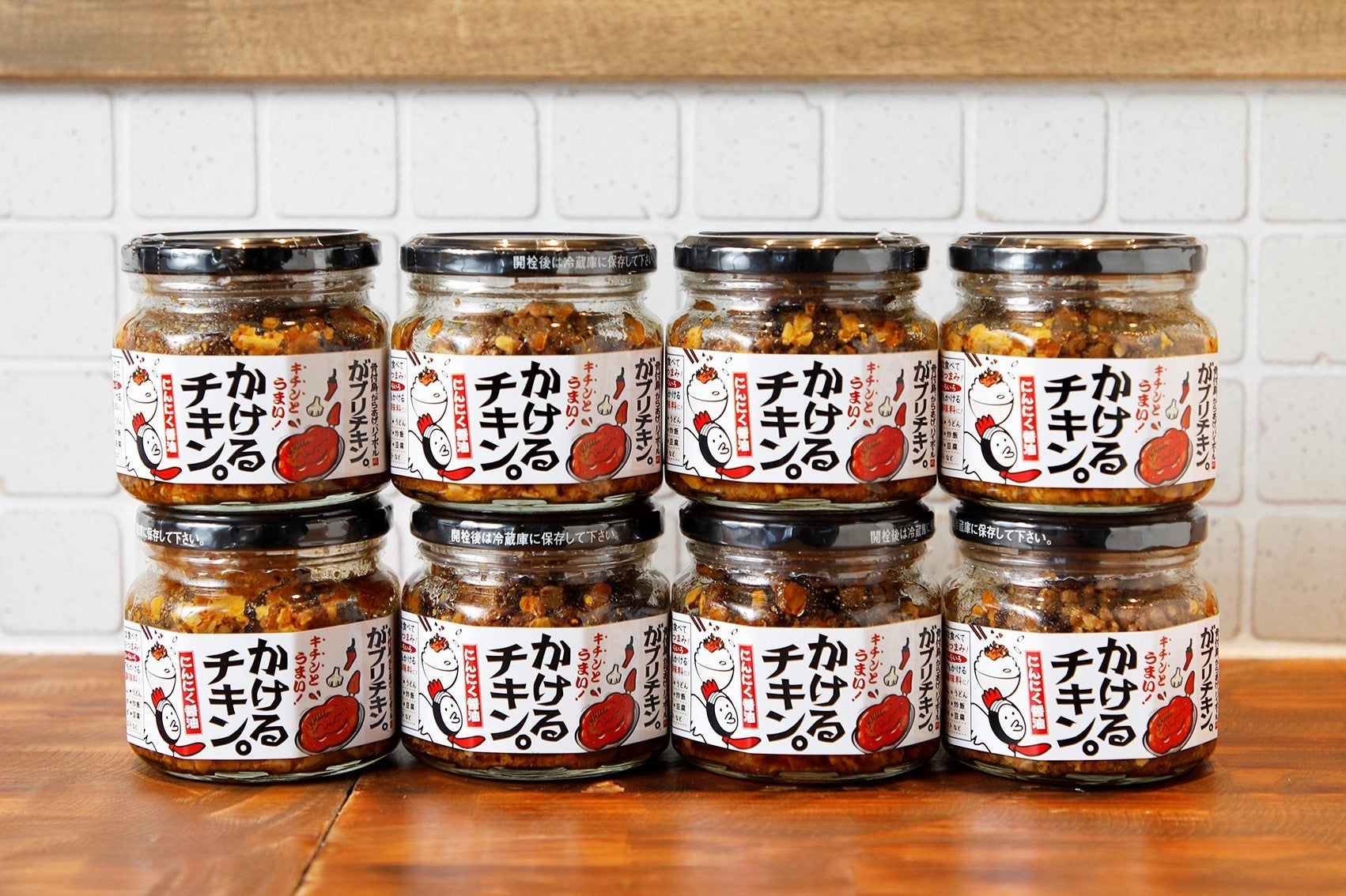 おうち時間でお酒を楽しむ機会が増えた中、おうちでも外食の気分が味わいたいというニーズにお応えすべく、名物の一つである「骨付鳥 おや鳥」を瓶詰めで再現したら面白いのではと商品の開発を進め、「かけるチキン。」の販売に至りました。にんにく醤油の効いたチキンは、そのまま食べるおつまみでも、卵かけごはんにかけても、万能調味料としてもぴったりな一品です。