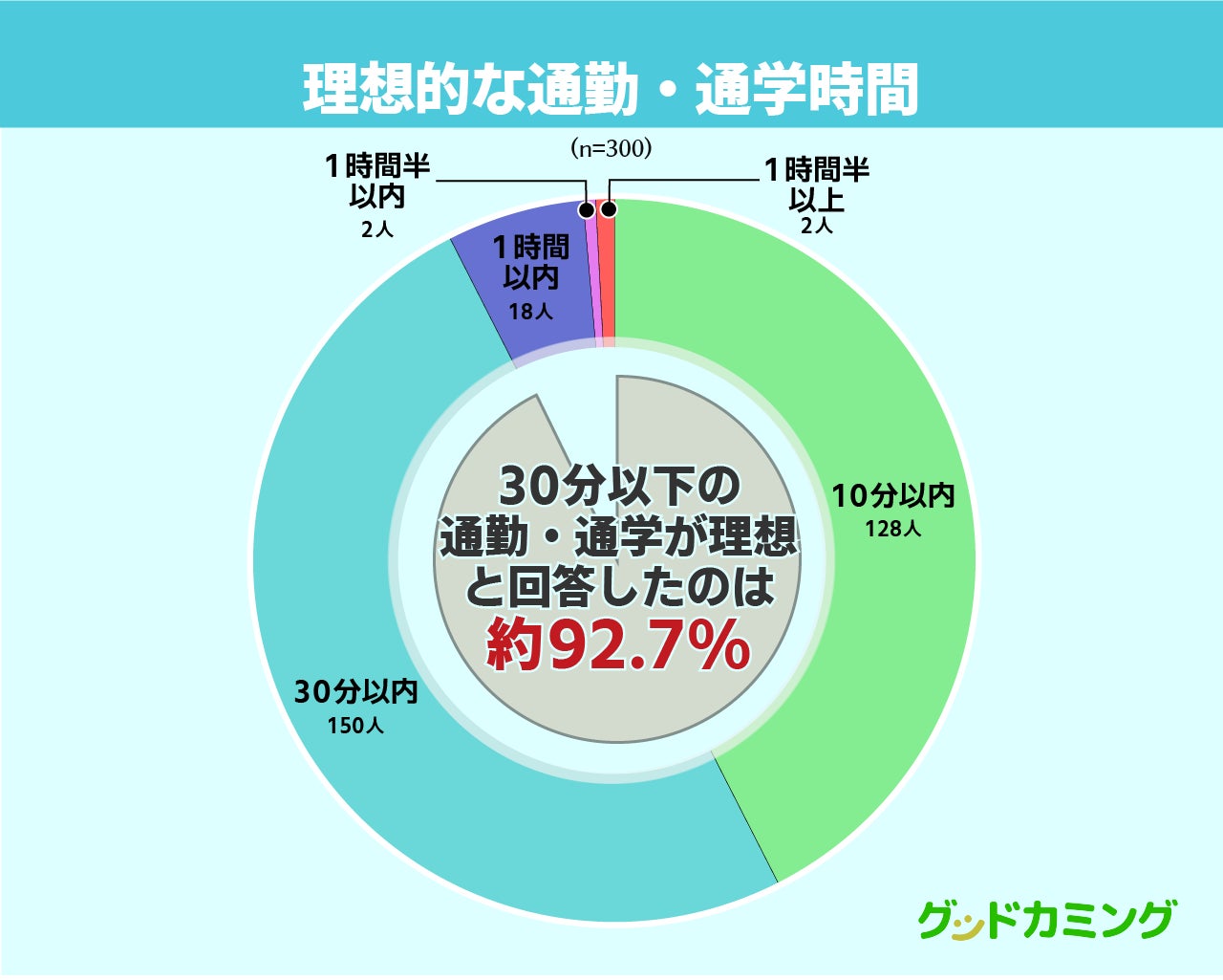 約92.7%が「理想の通勤時間は30分以下」と回答